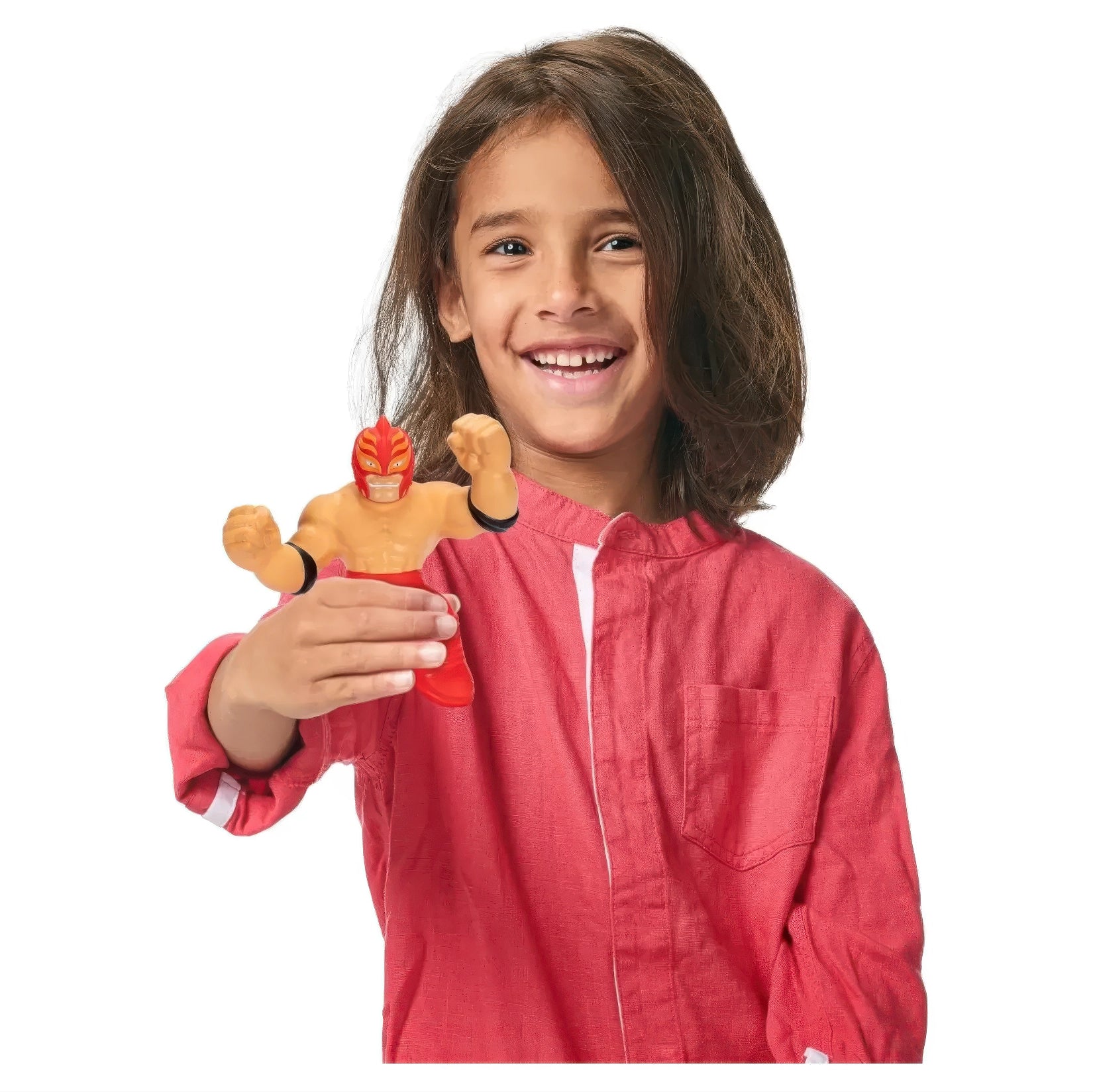 Squeeze, squish and stretch Rey Mysterio's arms, legs and body! His amazing stretchy body can stretch up to 3 times his size and then return to his original shape and size! Kids will discover a new way to play with this stretchy 4.5" tall collectible toy wrestler! Some of your child's favorite WWE Superstars are here to collect including John Cena, Rey Mysterio, Roman Reigns and Cody Rhodes. Collect all the Heroes of Goo Jit Zu WWE Stretchy Superstars and prepare for some goo filled fun!