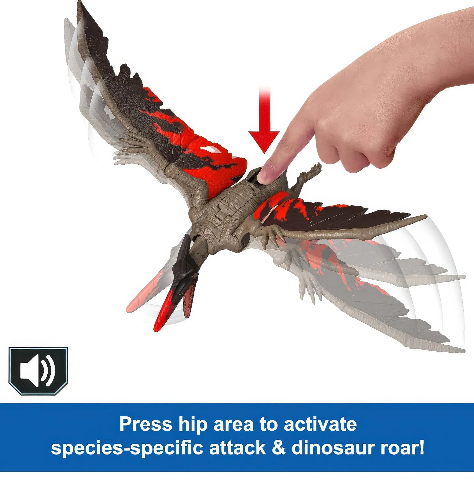 Mattel Jurassic World Dinosaur Toys with Roar Sound & Attack Action, Wild Roar Posable Figure Pteranodon Figure