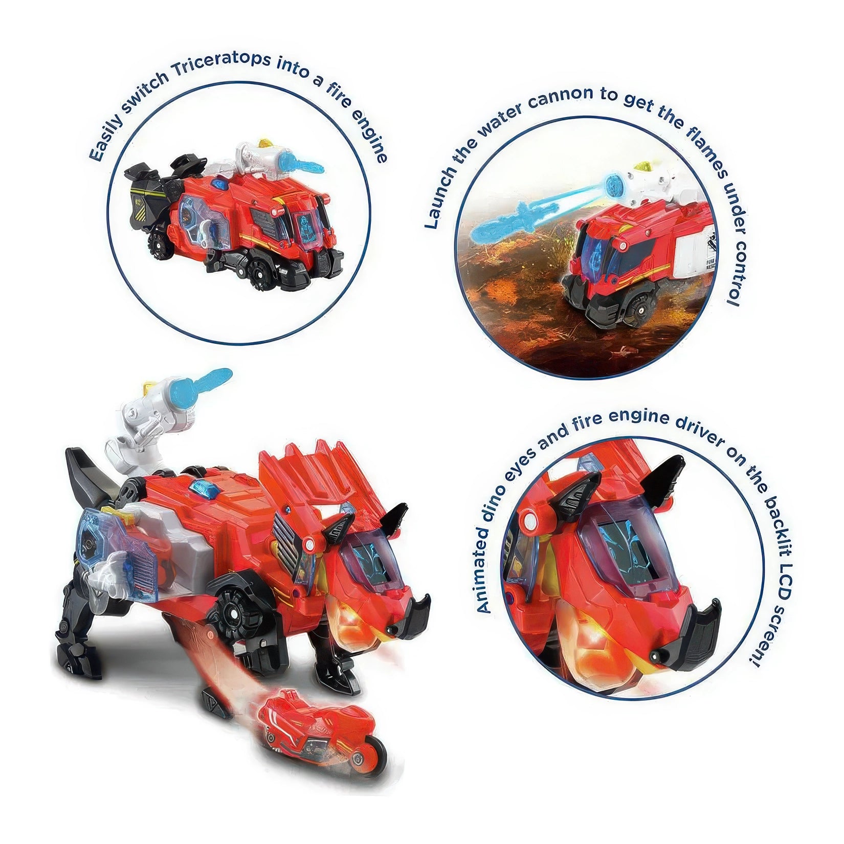 VTech Switch & Go Dinos Hero the Triceratops – 2-in-1 Dino Fire Engine Toy with Lights, Sounds & Transforming Action