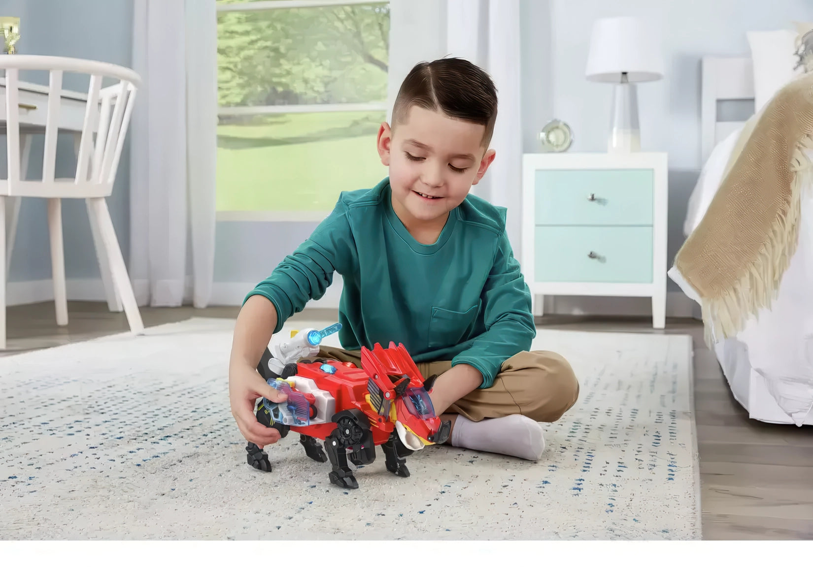 • 🚒 Lights & Sound Effects – Includes flashing lights, roaring dino sounds, and fun phrases to spark the imagination