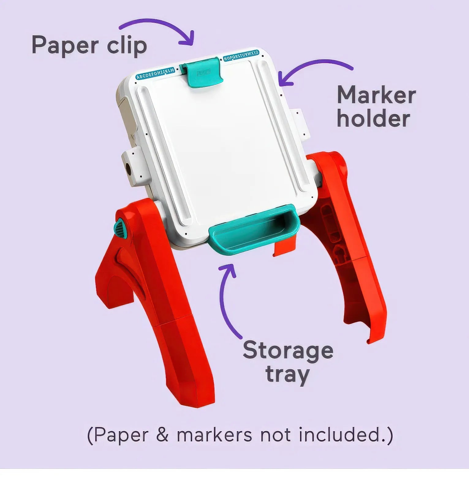 • A real art easel. Includes a clip to hold paper and storage for utensils.