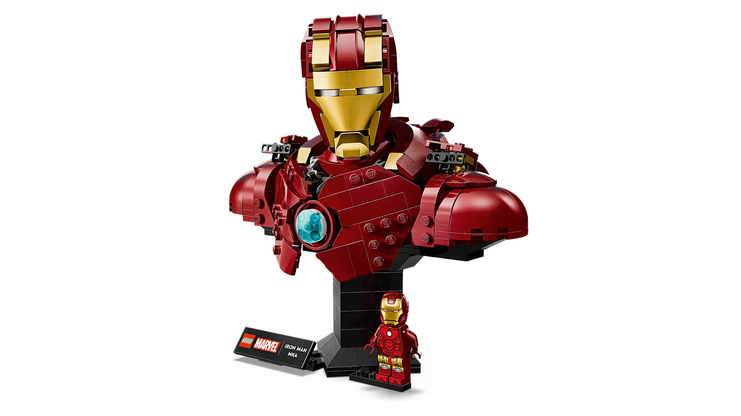 • LEGO® ǀ Marvel Iron Man figure for adults – Iron Man MK4 Bust is a collectible, build-and-display set for experienced model-makers and adult Super Hero enthusiasts