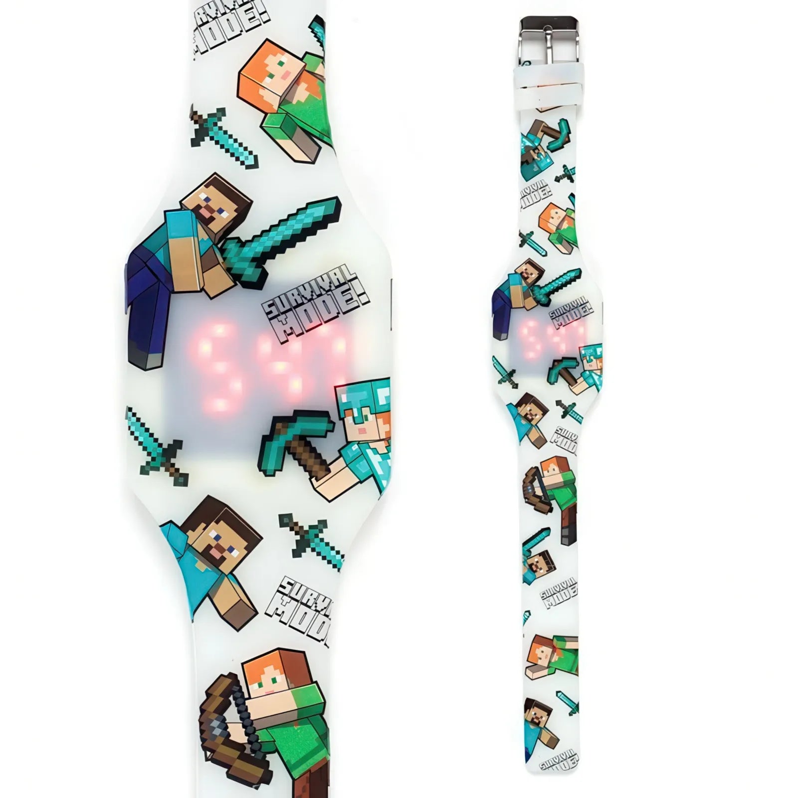 Level up your child's style with this officially licensed Minecraft digital watch! Perfect for young adventurers and crafting enthusiasts, this durable silicone timepiece brings the beloved blocky world of Minecraft right to their wrist.