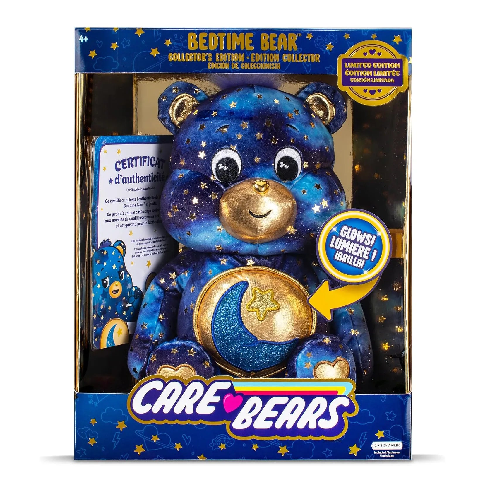 CARE BEARS Collector Edition Glowing Belly Bedtime Bear - Cute Luminous Collectible Plush Toy for Boys and Girls