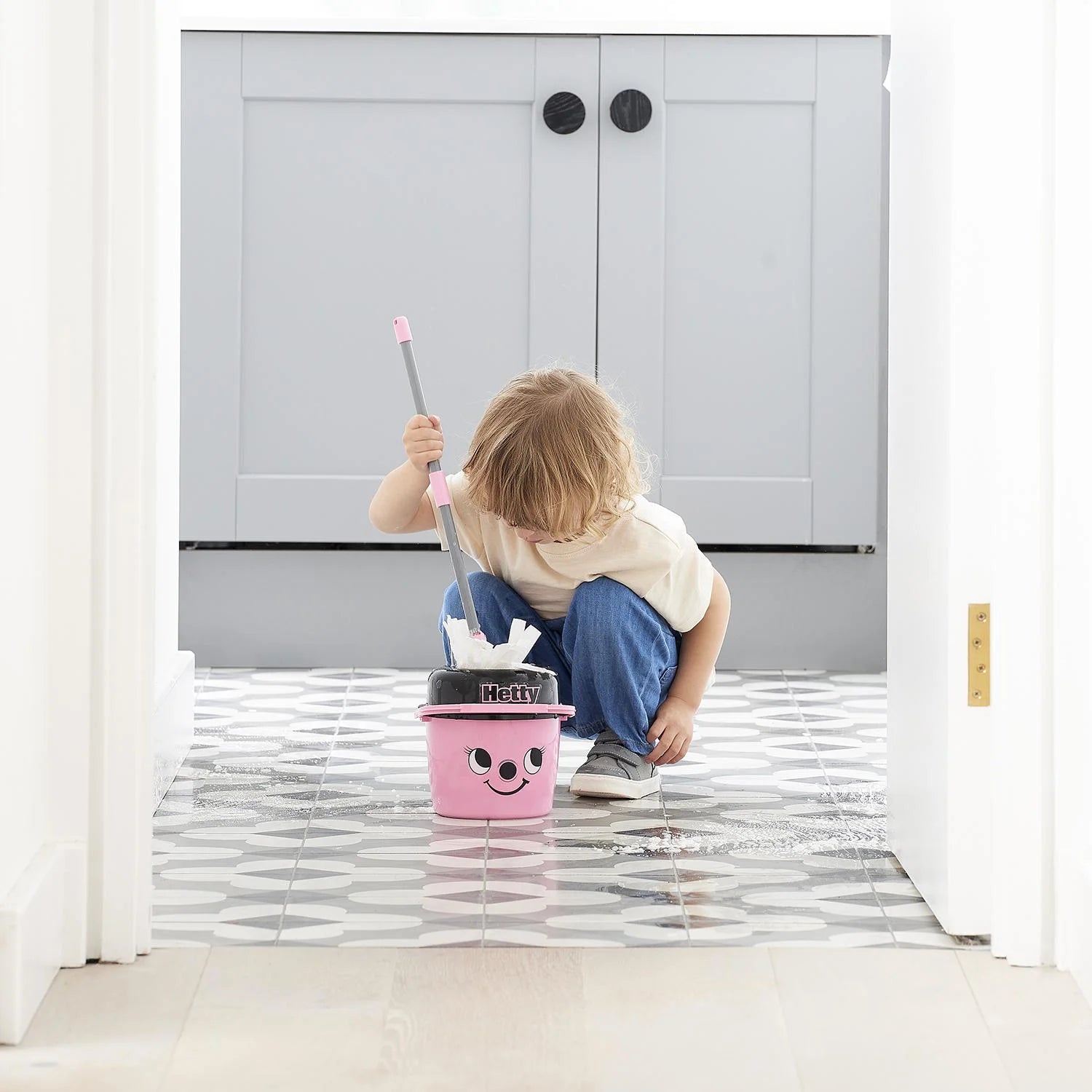 Whether cleaning up imaginary mess or assisting the grown-ups around the home, this mop and bucket has just the ticket. In true Hetty style, it is super easy to use, featuring a handle for easy transportation and a mop wringer for when the job is done! Your little one will absolutely love getting to know Hetty and all that she can offer!
