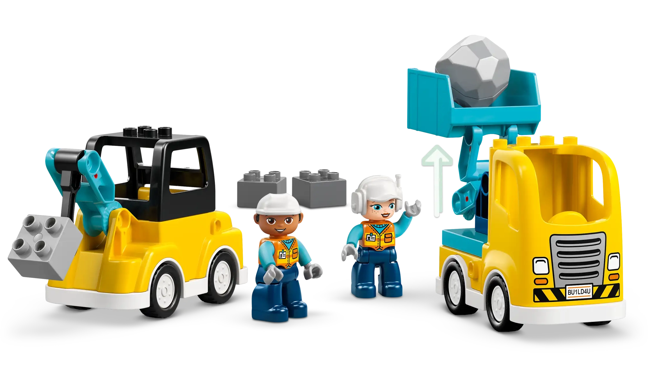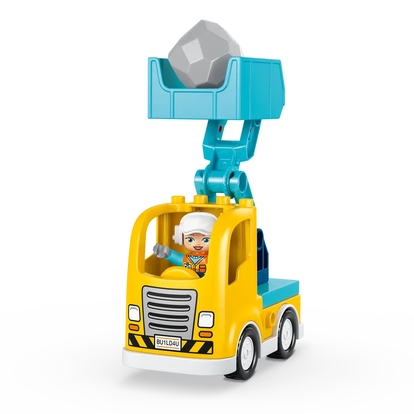 • 1 SET, 6 VEHICLE TOYS – This toddler LEGO® DUPLO® set’s bricks assemble to make 2 tow trucks with different hooks, a loader, scissor lift, dump truck or excavator toy with a flexible arm