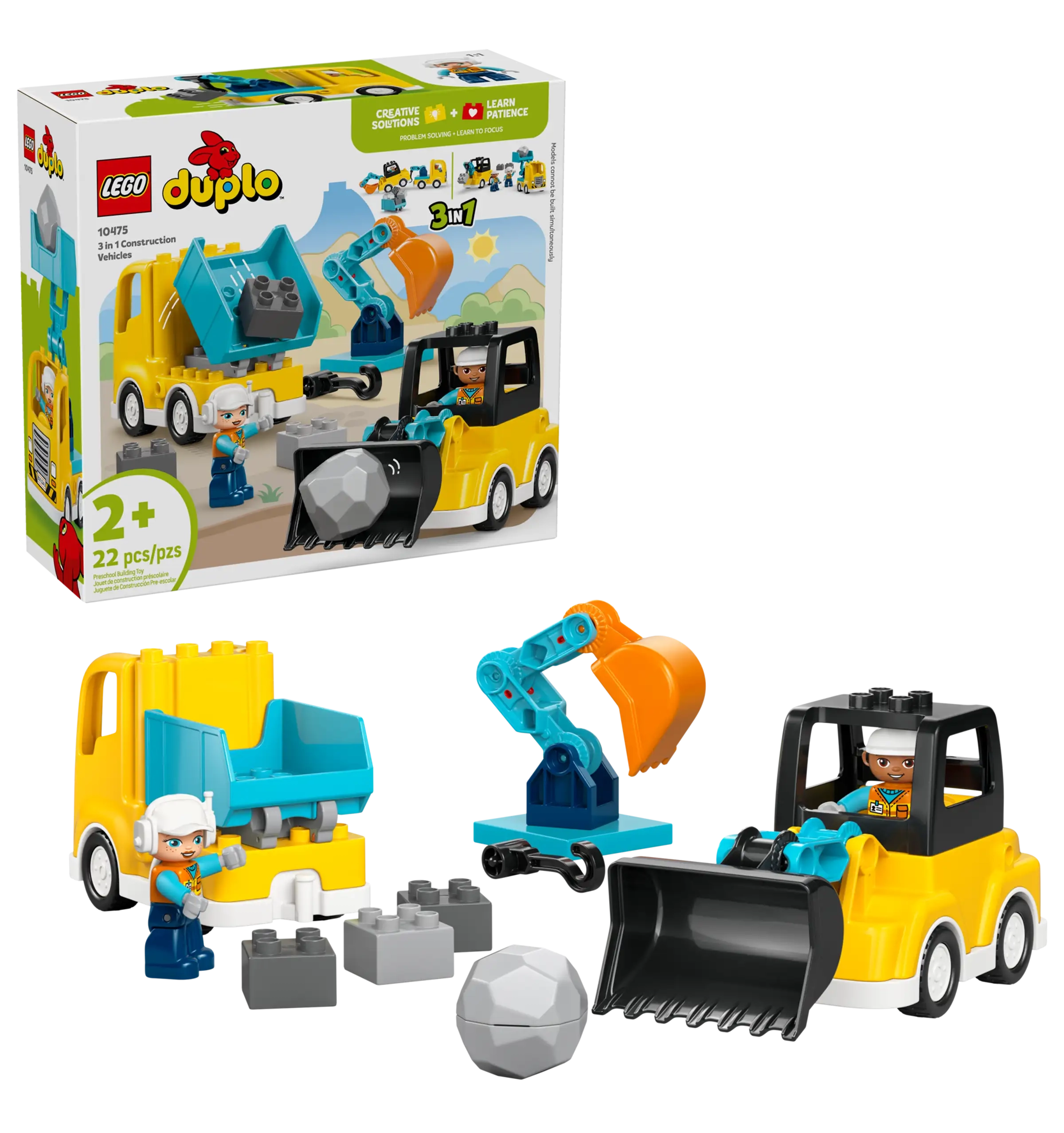 • BUILDING TOYS FOR TODDLERS – Rev up young kids’ creativity with the LEGO® DUPLO® Town 3 in 1 Construction Vehicles (10475), whose 22 bricks assemble into 6 toddler truck toy building options