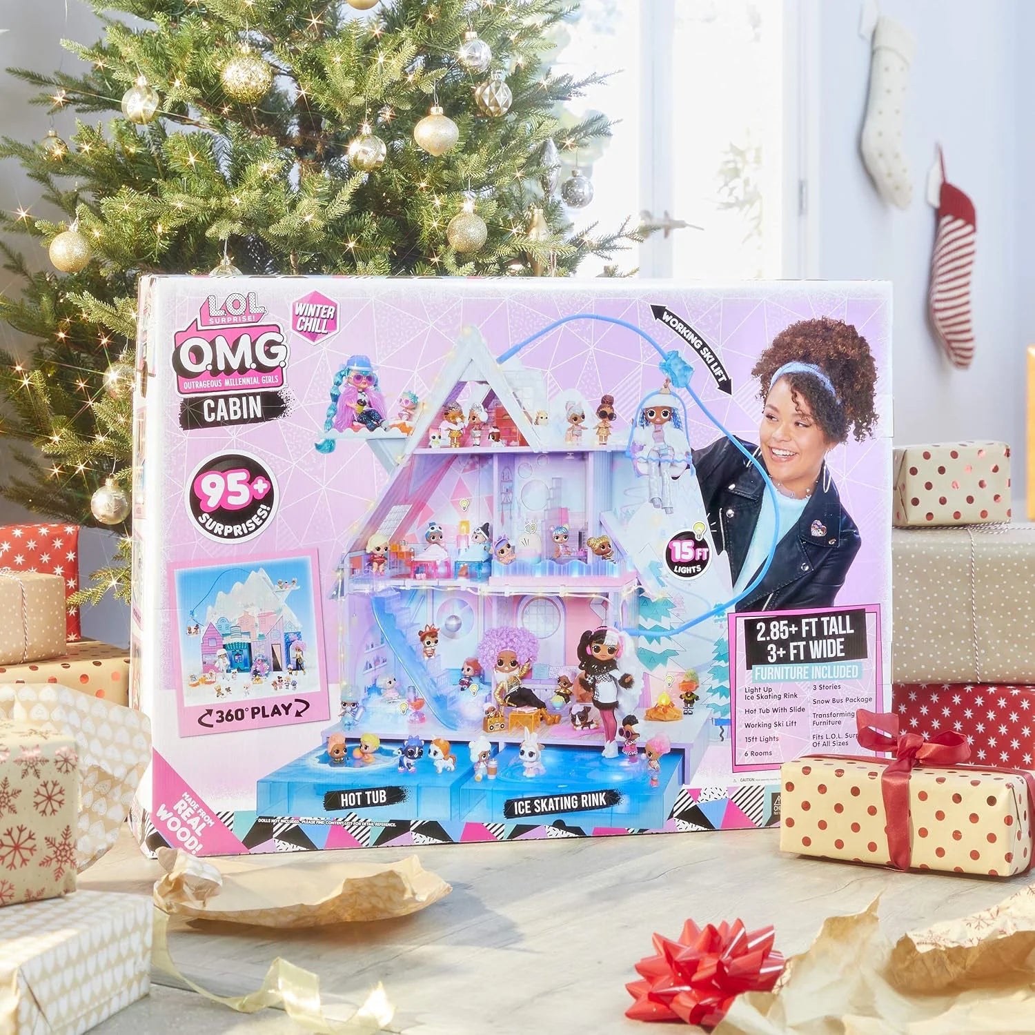 L.O.L. Surprise! OMG Winter Chill Cabin Wooden Doll House & 95+ Surprises