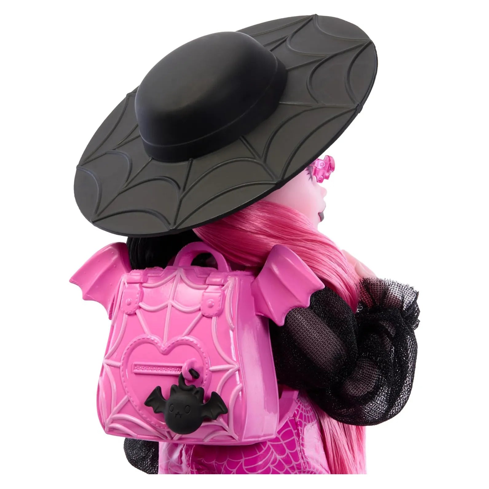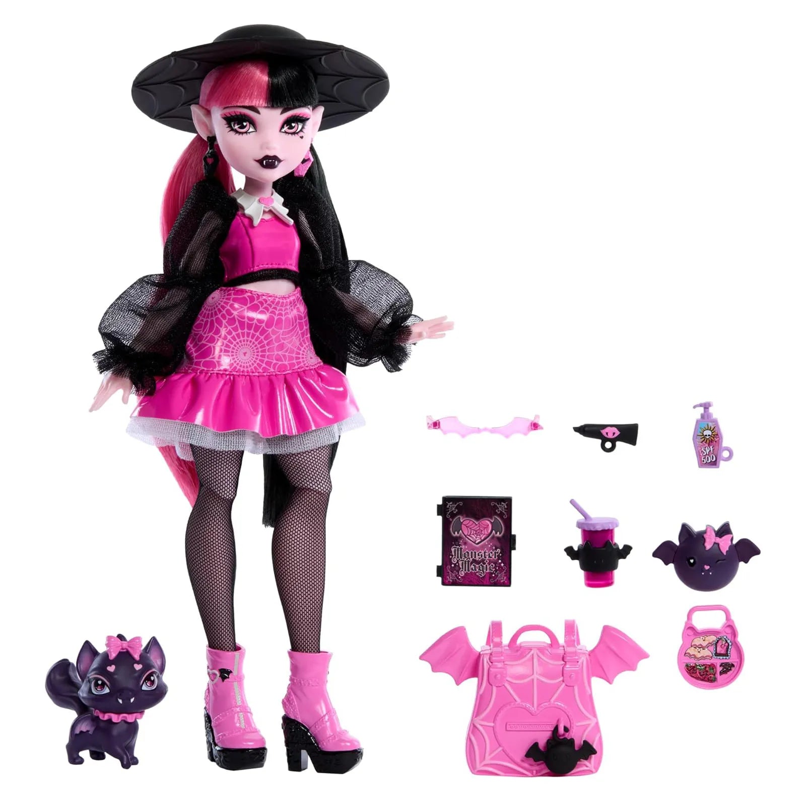 Monster High Draculaura Doll 27 cm, with Pet Bat-Cat Count Fabulous & Accessories Like Backpack, Spell Book, Bento Box & More