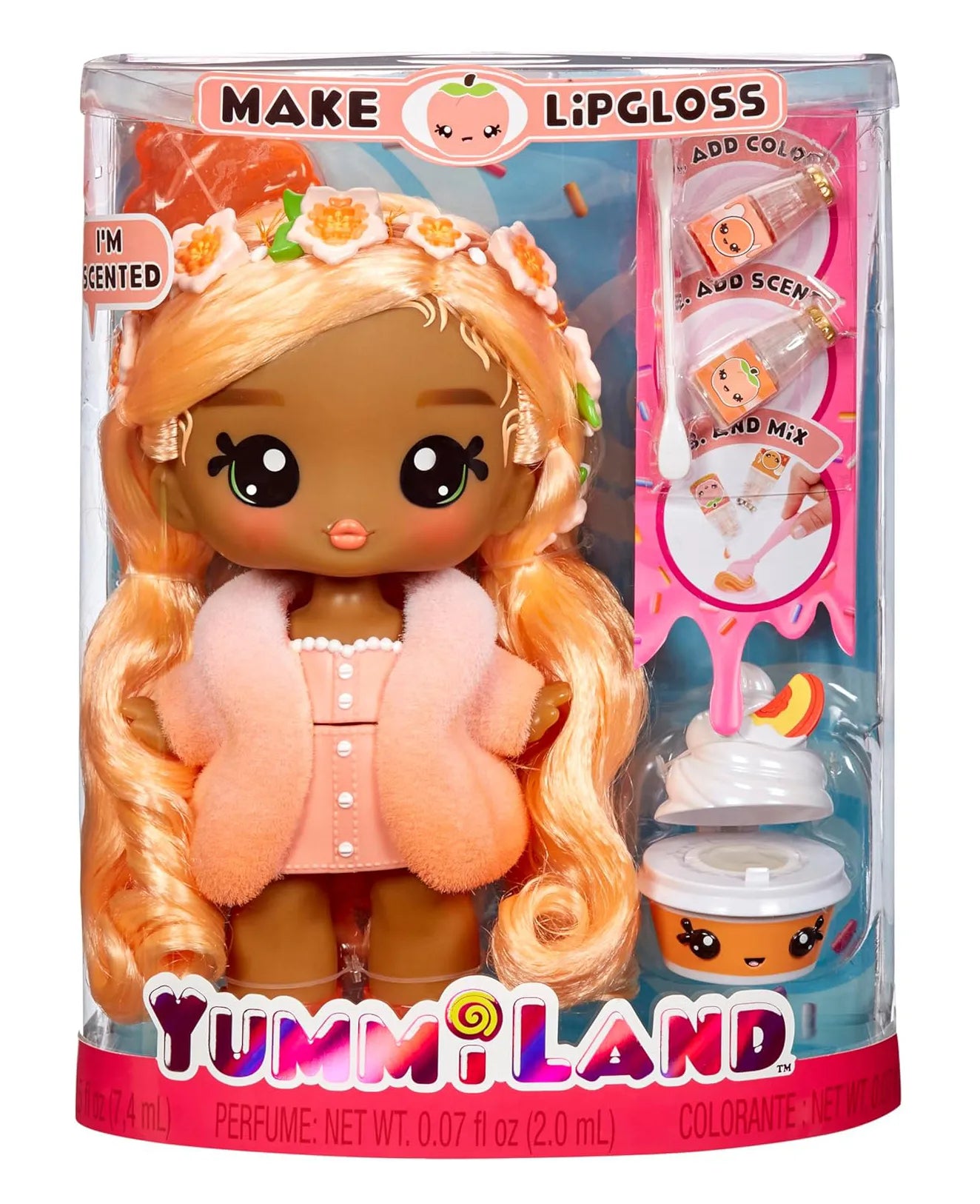 • SCENTED CHARACTER DOLL. Like all Yummiland dolls, Piper Peach herself is scented with her signature Peach fragrance, matching that of her included lip gloss kit.