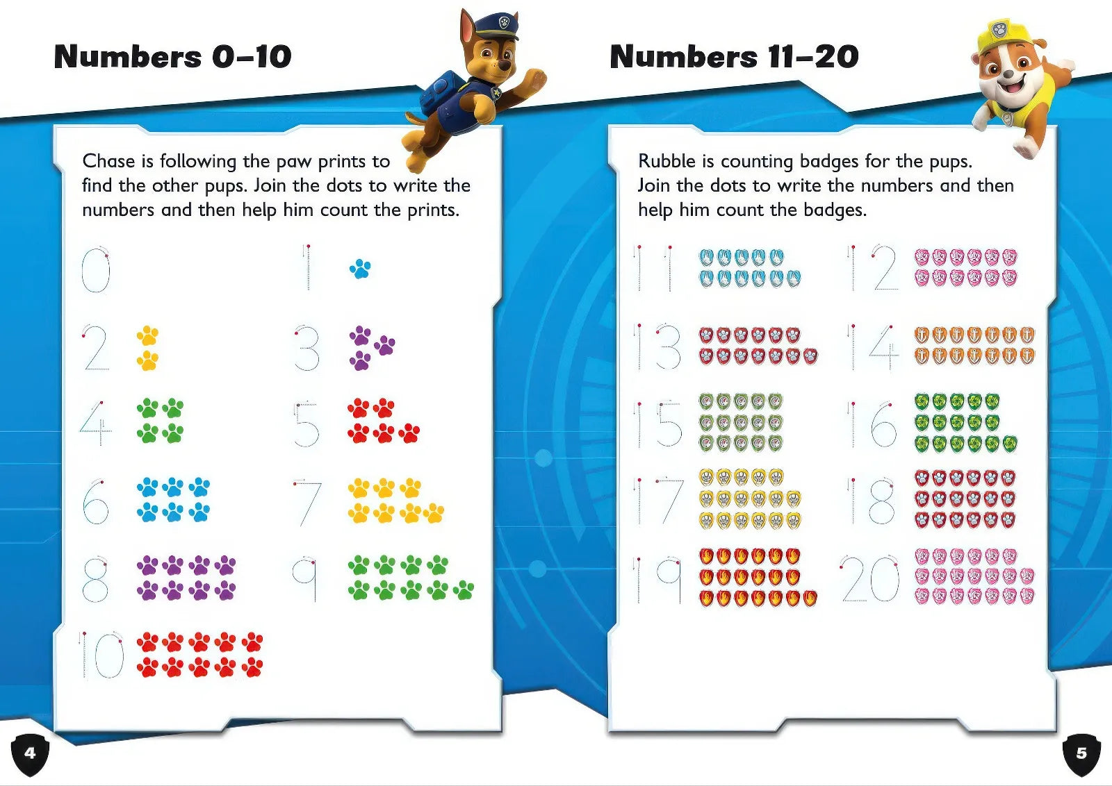 • Children can practise counting from 1-20, use numbers in a sequence, and learn basic addition and subtraction alongside the PAW Patrol characters
