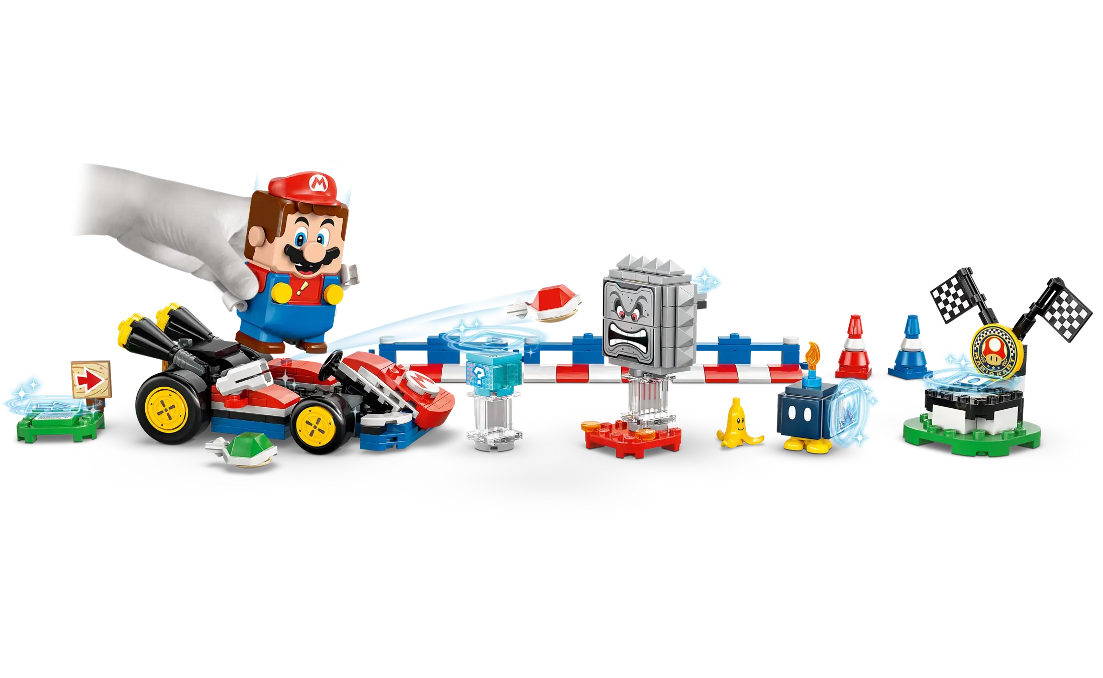 • Brick-built Mario Kart™ toy playset for kids – Create a fun-packed LEGO® Super Mario™ course for interactive races with LEGO® Mario™ in his Standard Kart with this Nintendo® LEGO set