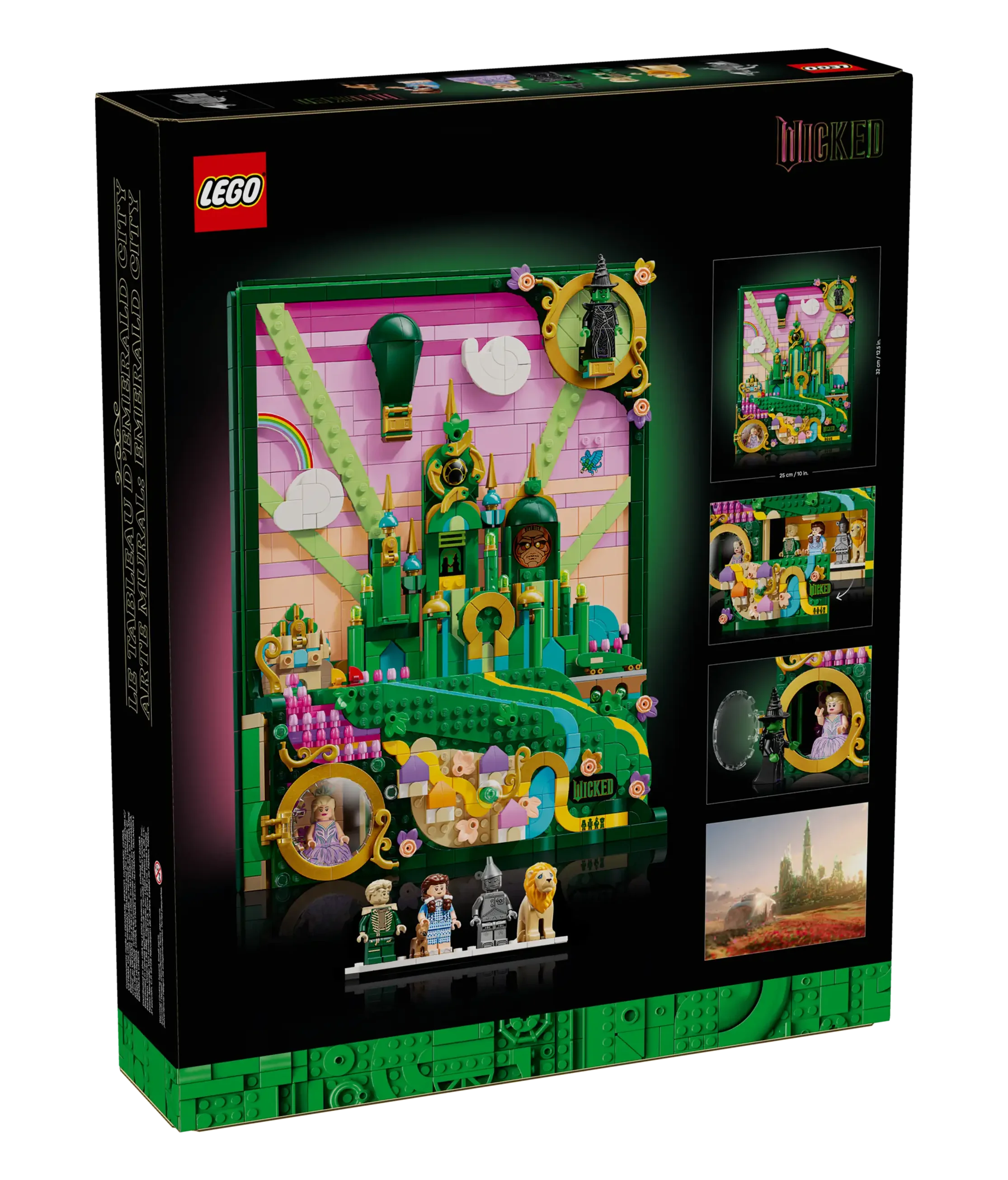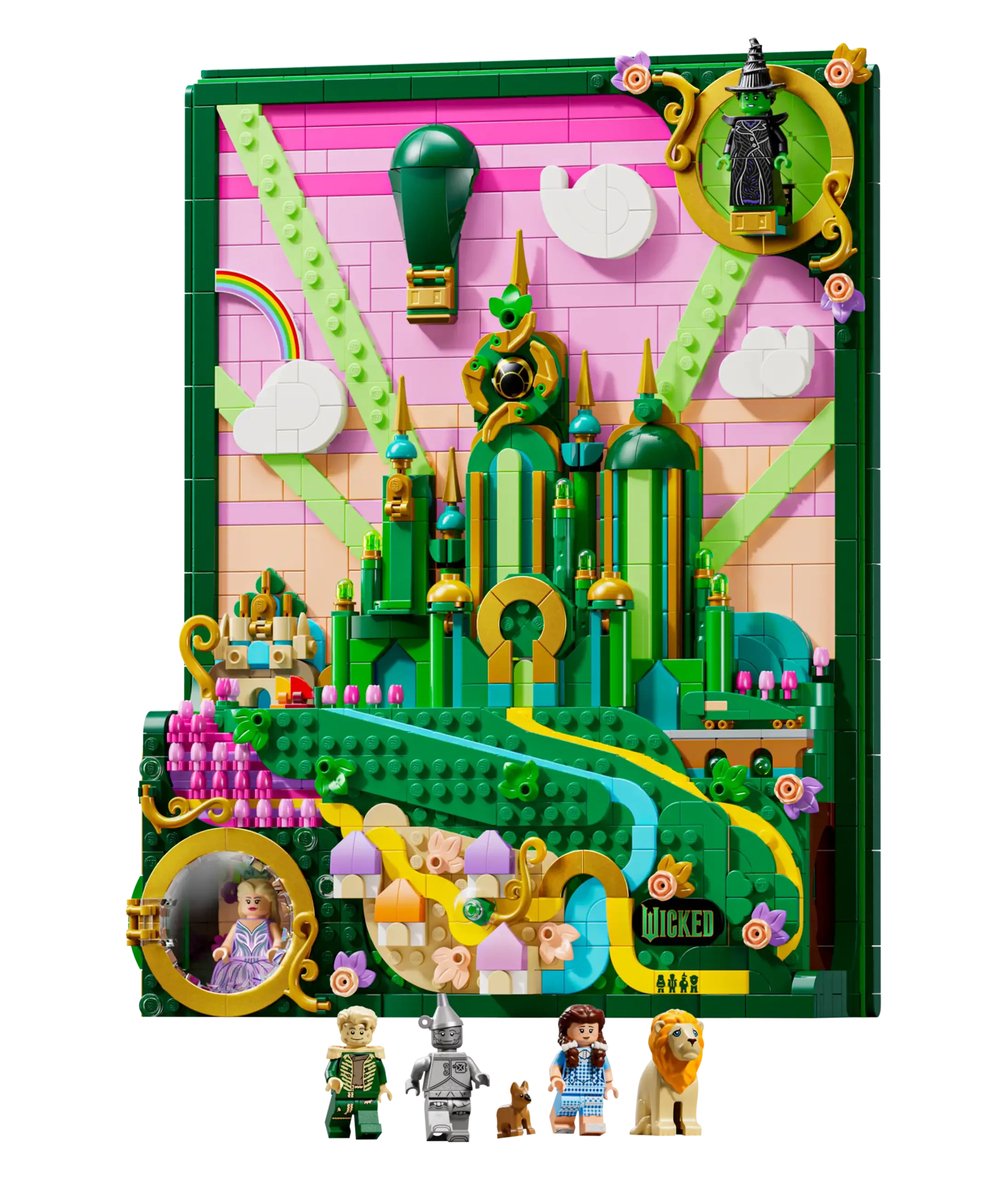 • LEGO® Wicked building set for adults – Bring movie adventures to your home with the Emerald City Wall Art fantasy decor gift, which includes 6 minifigures, plus a Toto figure and many hidden features