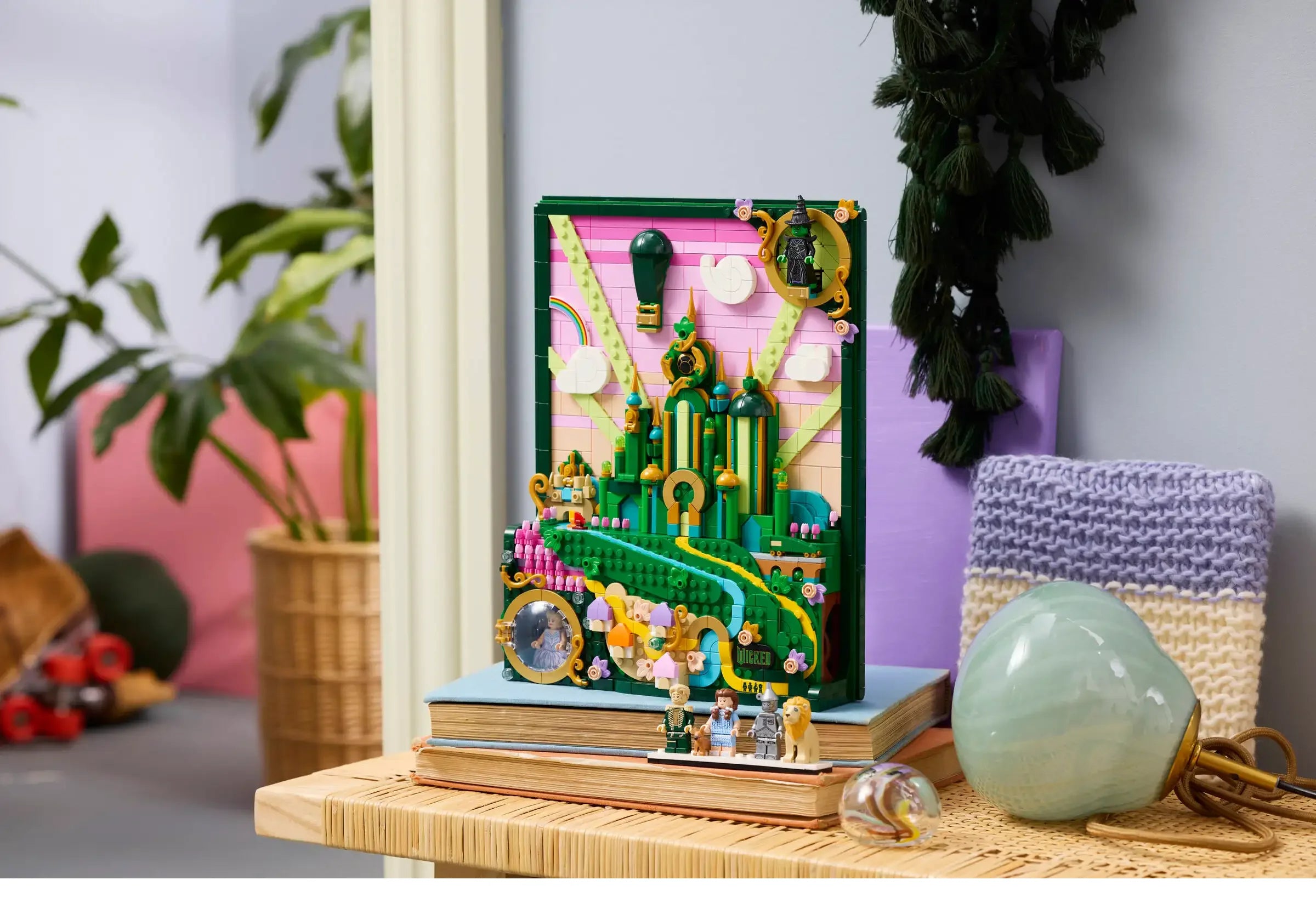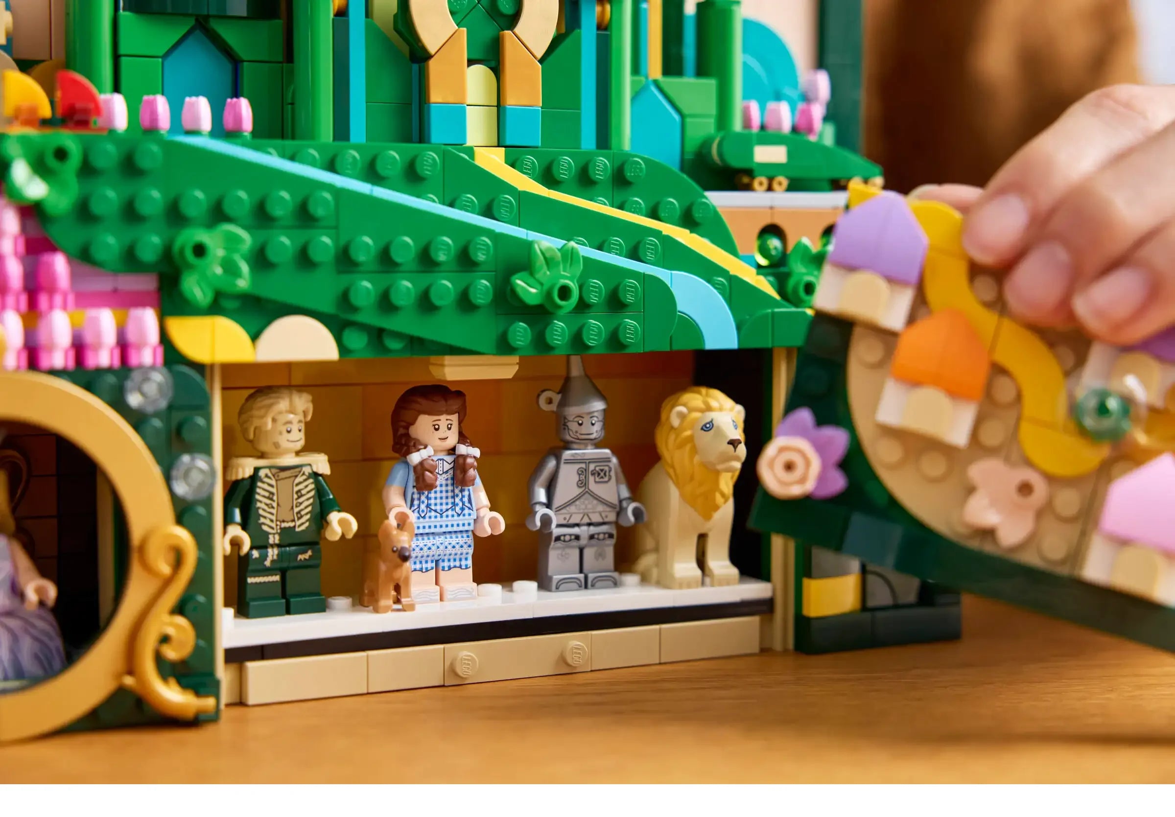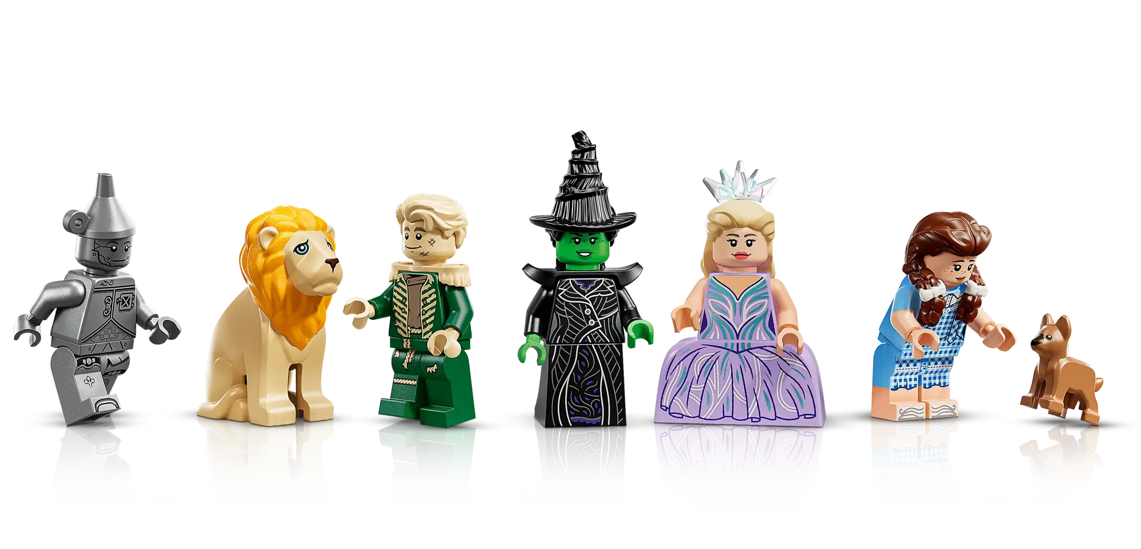 • 7 characters and minifigures – LEGO® artwork features Elphaba flying over Emerald City and Glinda floating in her bubble, as well as Dorothy Gale, Cowardly Lion, Scarecrow, Tin Man and Toto