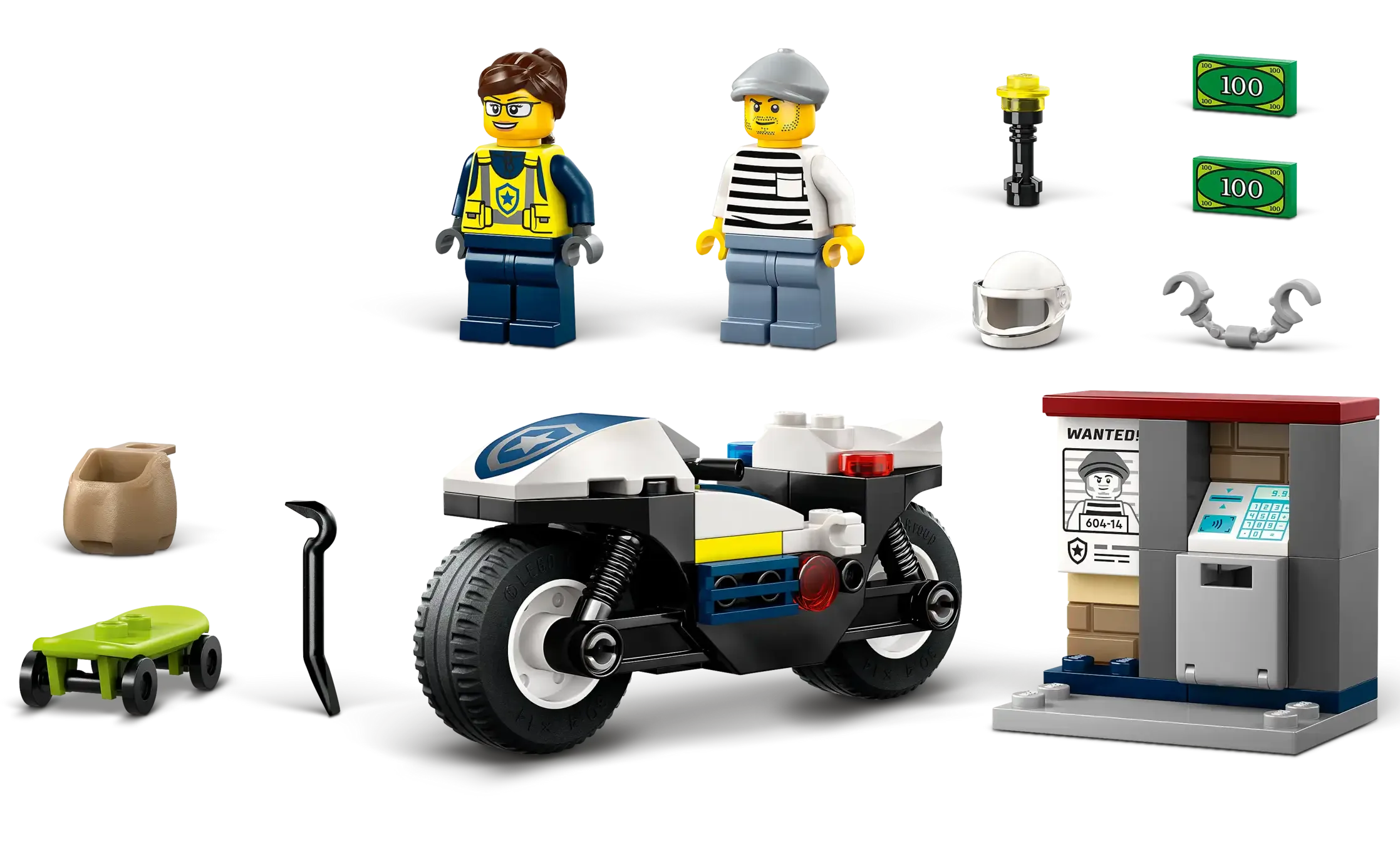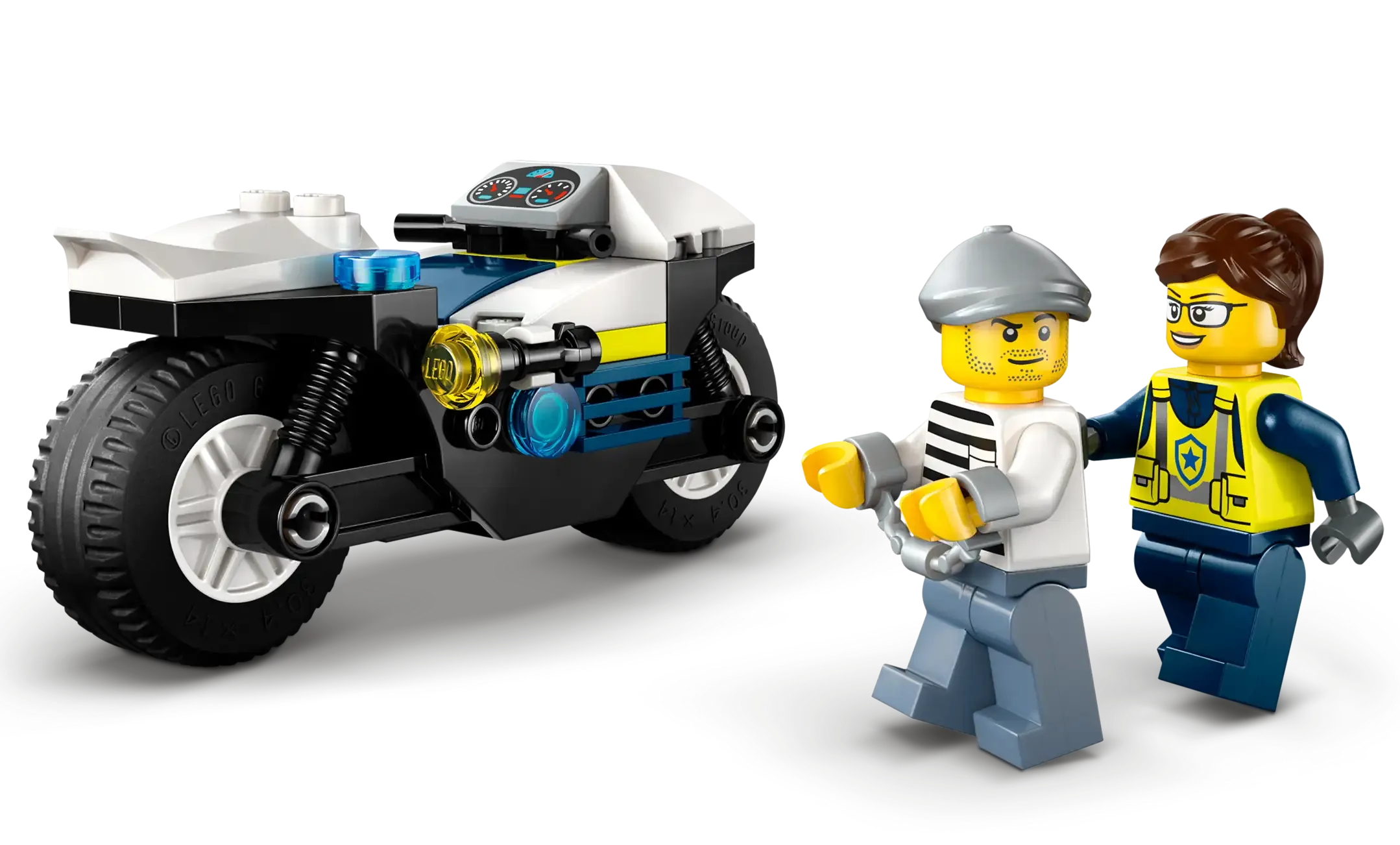 • Police motorbike toy for ages 4 and up – Introduce your everyday hero to a world of imaginative play with this LEGO® City Police Motorcycle Chase playset
