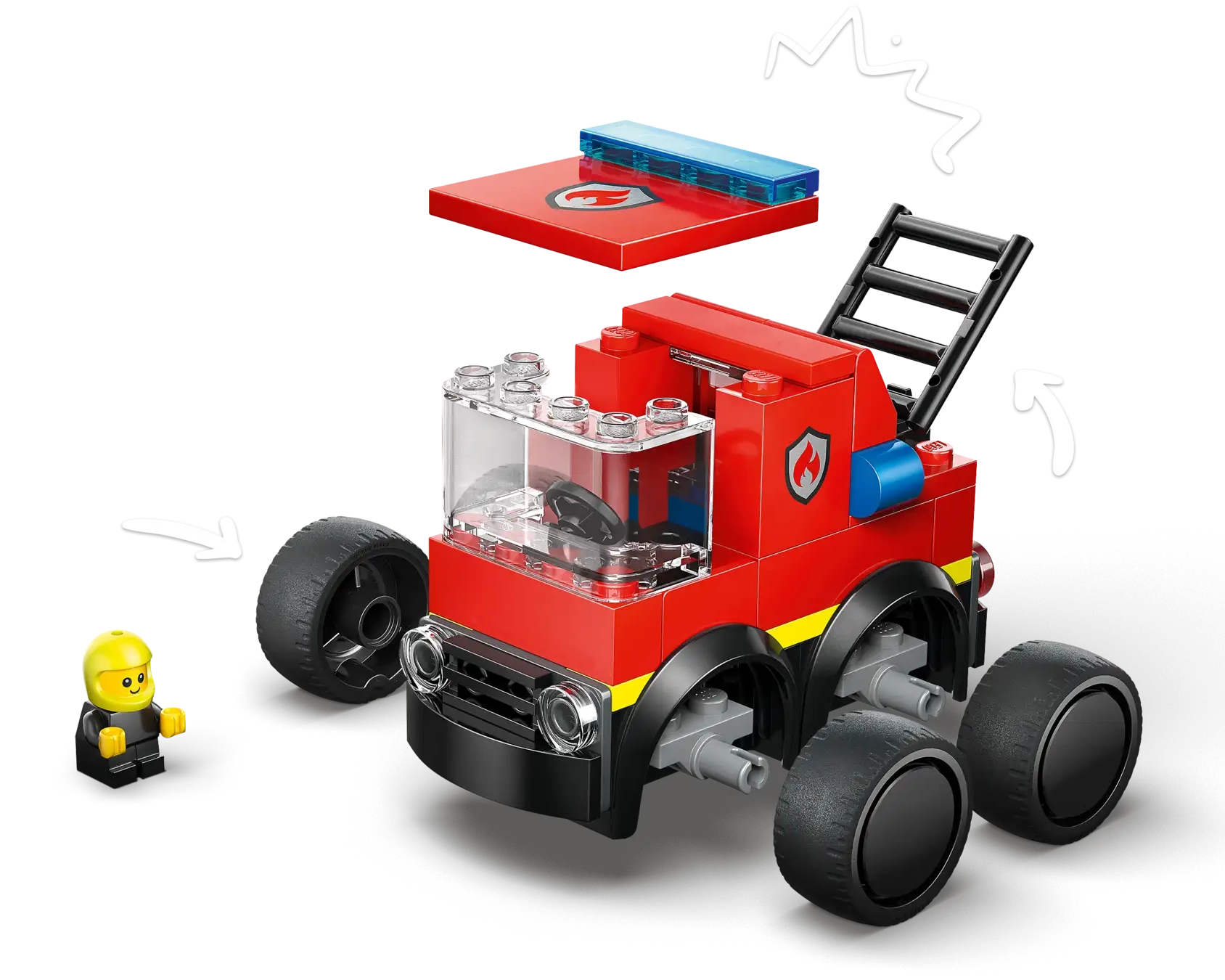 • FIREFIGHTER JUNIOR MINIFIGURE – Kids can pop the mini firefighter into the driver’s seat before setting out on exciting fire rescue missions