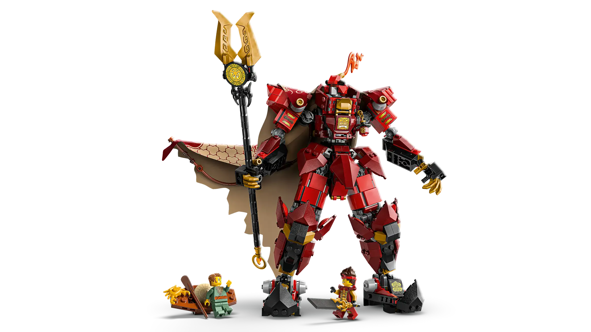 • 2 NINJAGO® minifigures – The model also includes ninja Kai with a blade, who can sit inside the mech’s chest, and a fisherman with a paddle in a boat to inspire extra storytelling