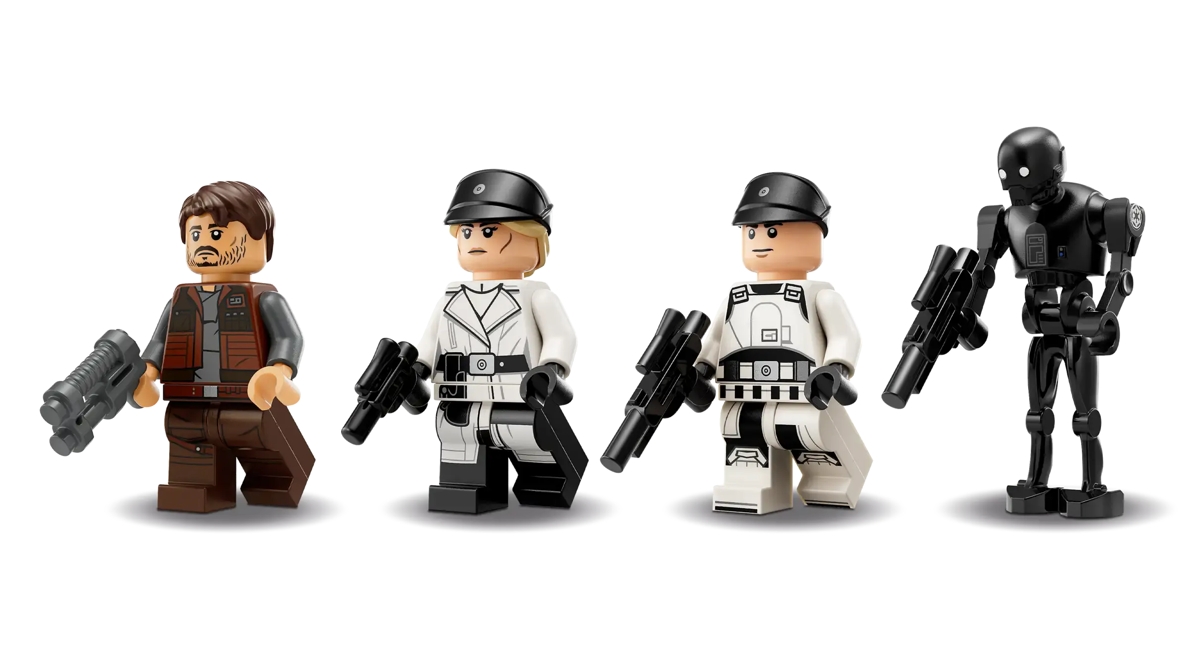 • 4 LEGO® Star Wars™ characters – Cassian Andor and Dedra Meero LEGO minifigures, each with a blaster pistol, and an ISB Tactical Agent LEGO minifigure and a K-2SO LEGO droid figure, each with a blaster