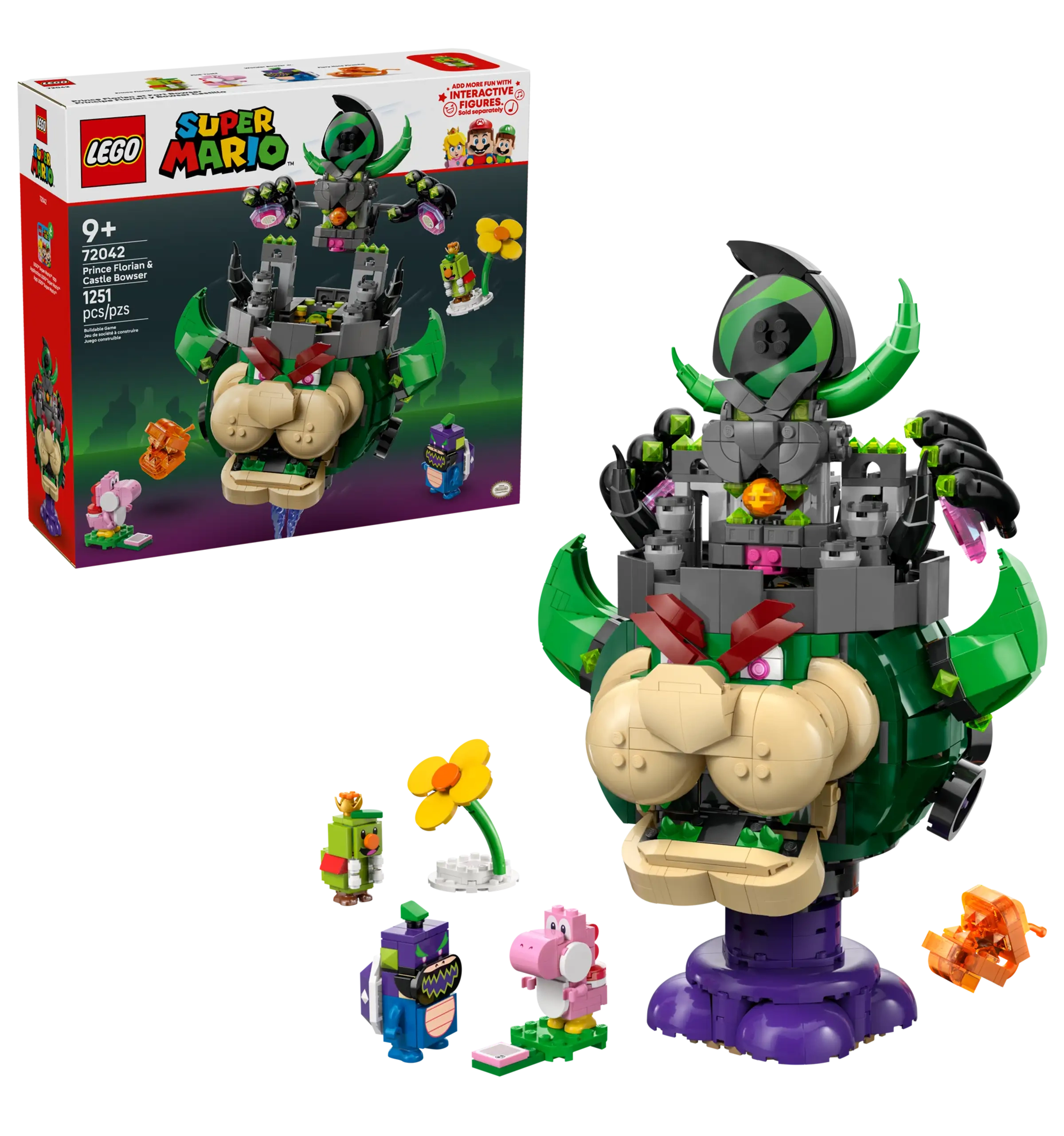 • 5 Nintendo® characters for role play – This play-and-display set includes a large buildable Castle Bowser toy figure, plus a Pink Yoshi, a Fiery Note Piranha, Prince Florian and Wonder Bowser Jr