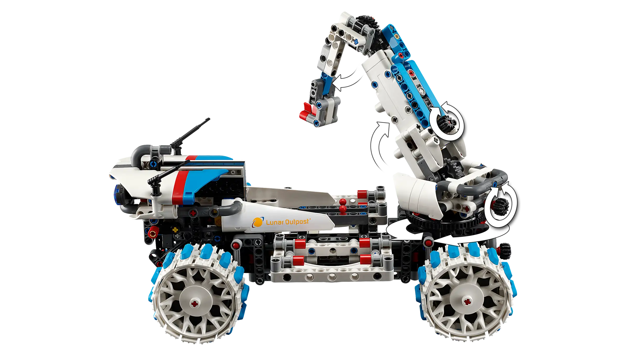 • Working functions – Use the rotating arm to lift the mining rover and the sample container from the main rover ready to search for Moon rocks