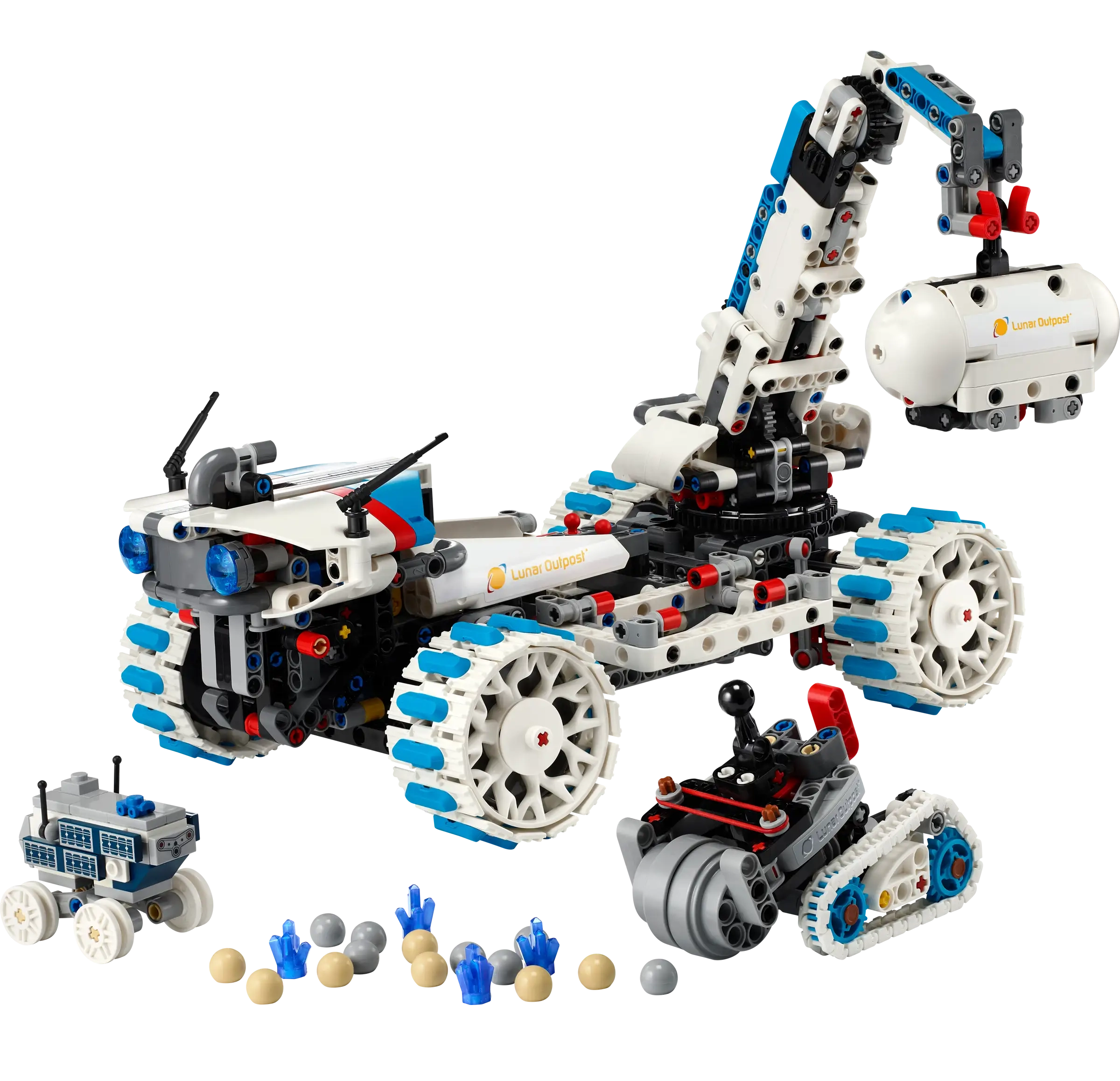 • Multiple vehicles and functions – Includes an all-terrain Moon rover with rocker suspension, 4-wheel steering and deployable solar panels, plus a smaller mining rover, sample container and MAPP rover