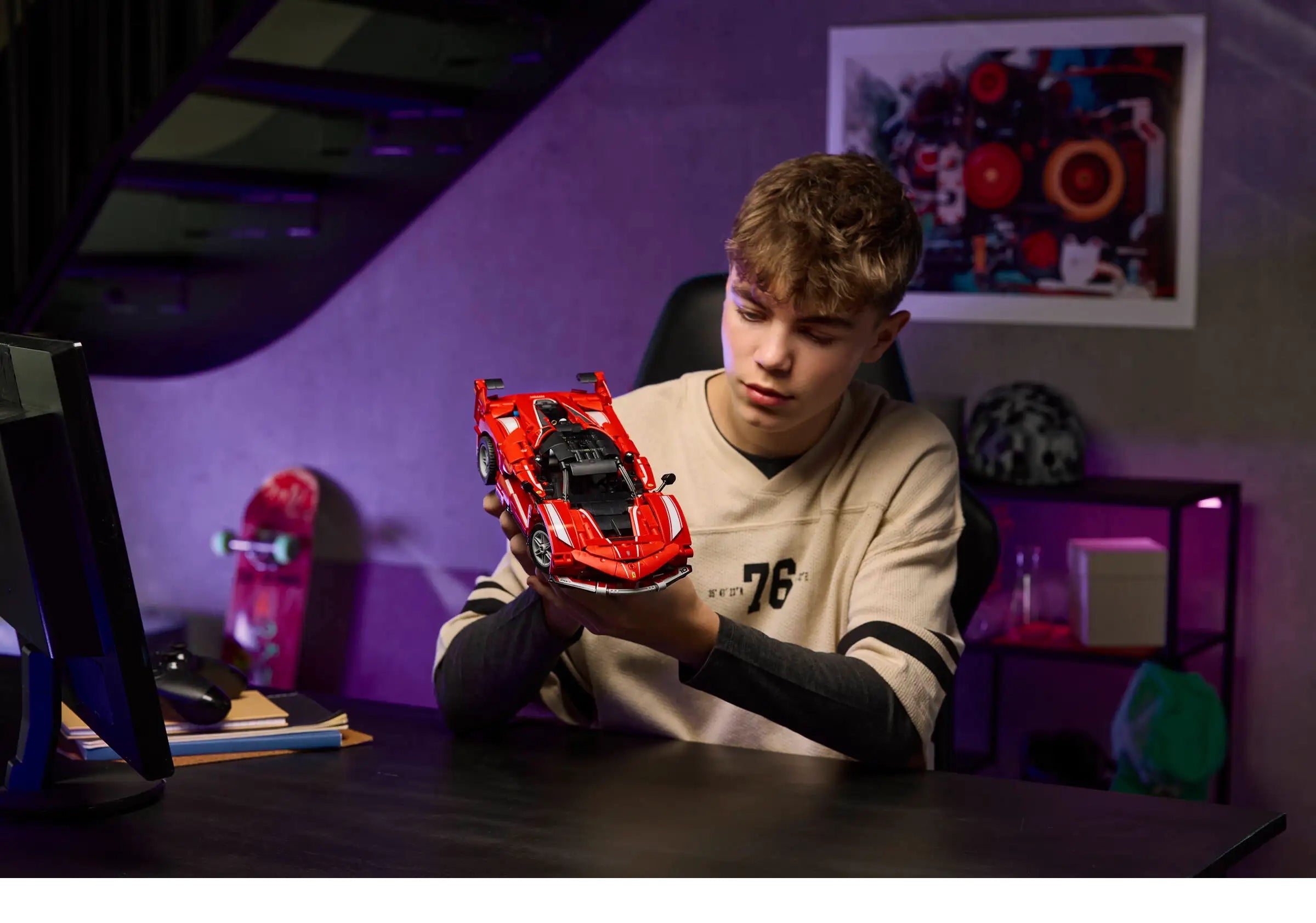 Just like the original, this model version features opening butterfly doors and an opening hood. Test out the realistic differential and see the pistons move, then open the engine cover to view the V12 engine. After exploring all the functions, kids can display their Ferrari toy car and admire its iconic red colour scheme. This set makes a fun gift for boys and girls, or anyone with a passion for Ferrari and luxury cars.