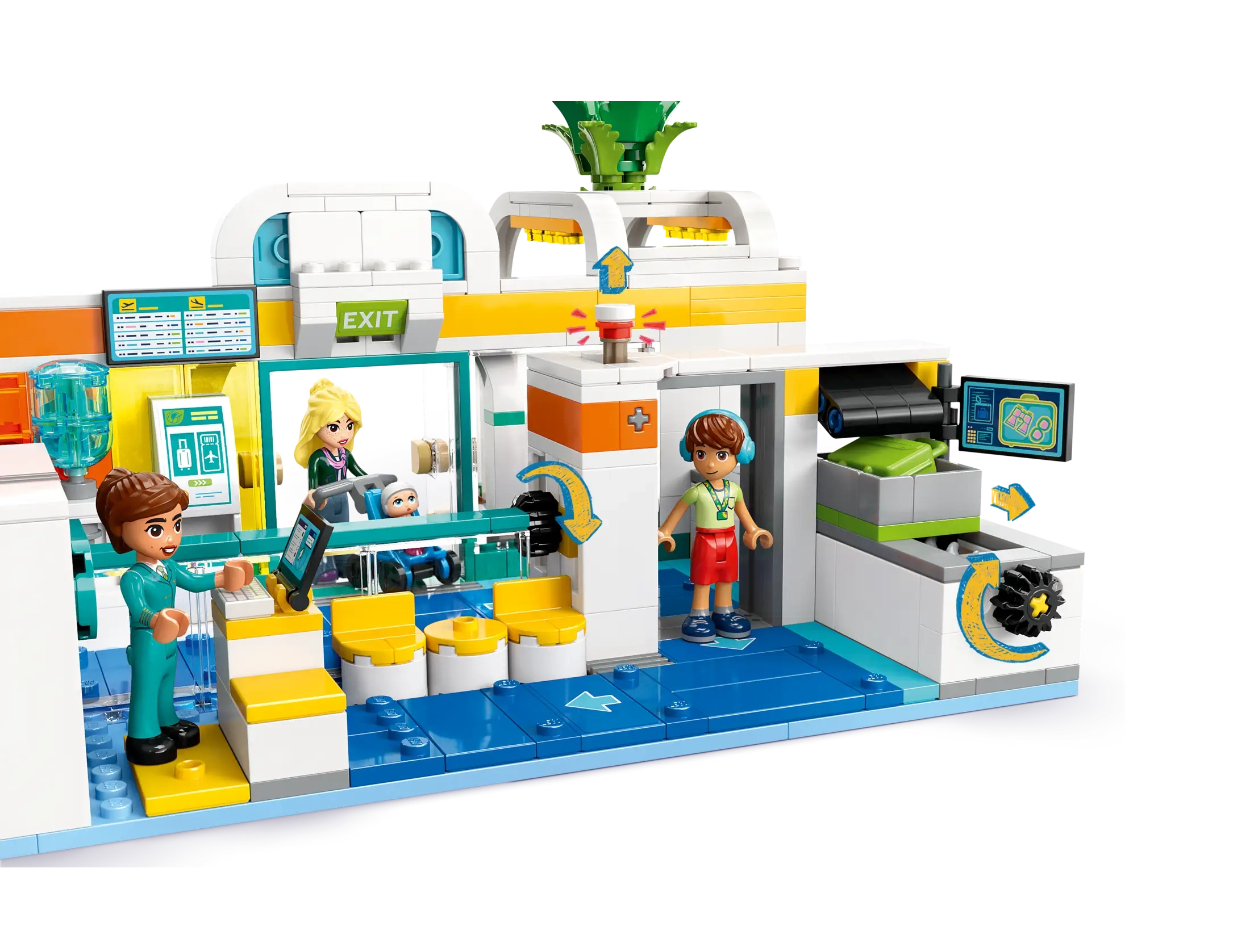 • Airport terminal toy – Realistic details include 2 luggage carts, a check-in desk, security gate with green and red details, X-ray machine, turning luggage carousel, vending machine and a water cooler