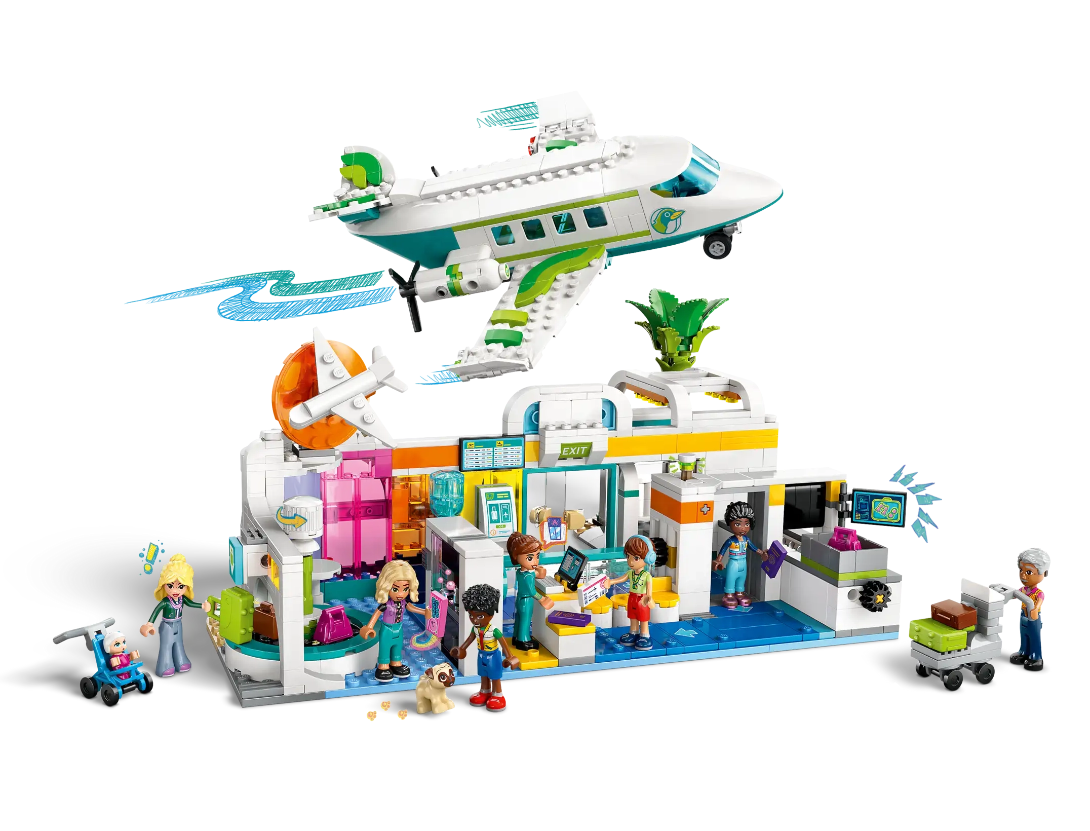 • Includes 8 LEGO® Friends characters – The diverse lineup of characters includes friends Zac and Nova, plus Zac’s sister who has flown in from France, a pilot figure and a baby
