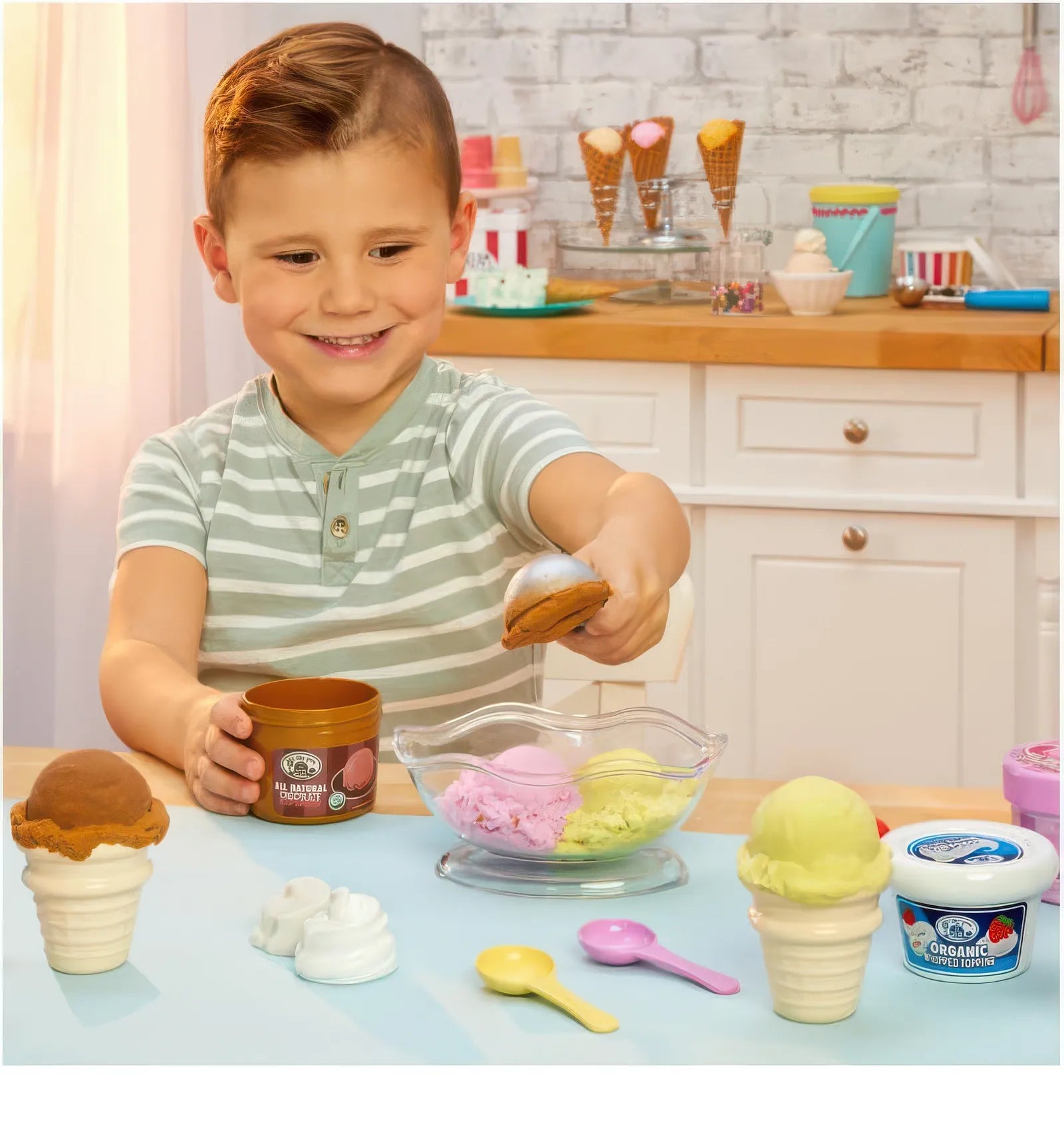LITTLE TIKES Creative Chefs Ice Cream Kit with Make-It Mix Play Sand, 20 Accessories, Realistic Pretend Play Set