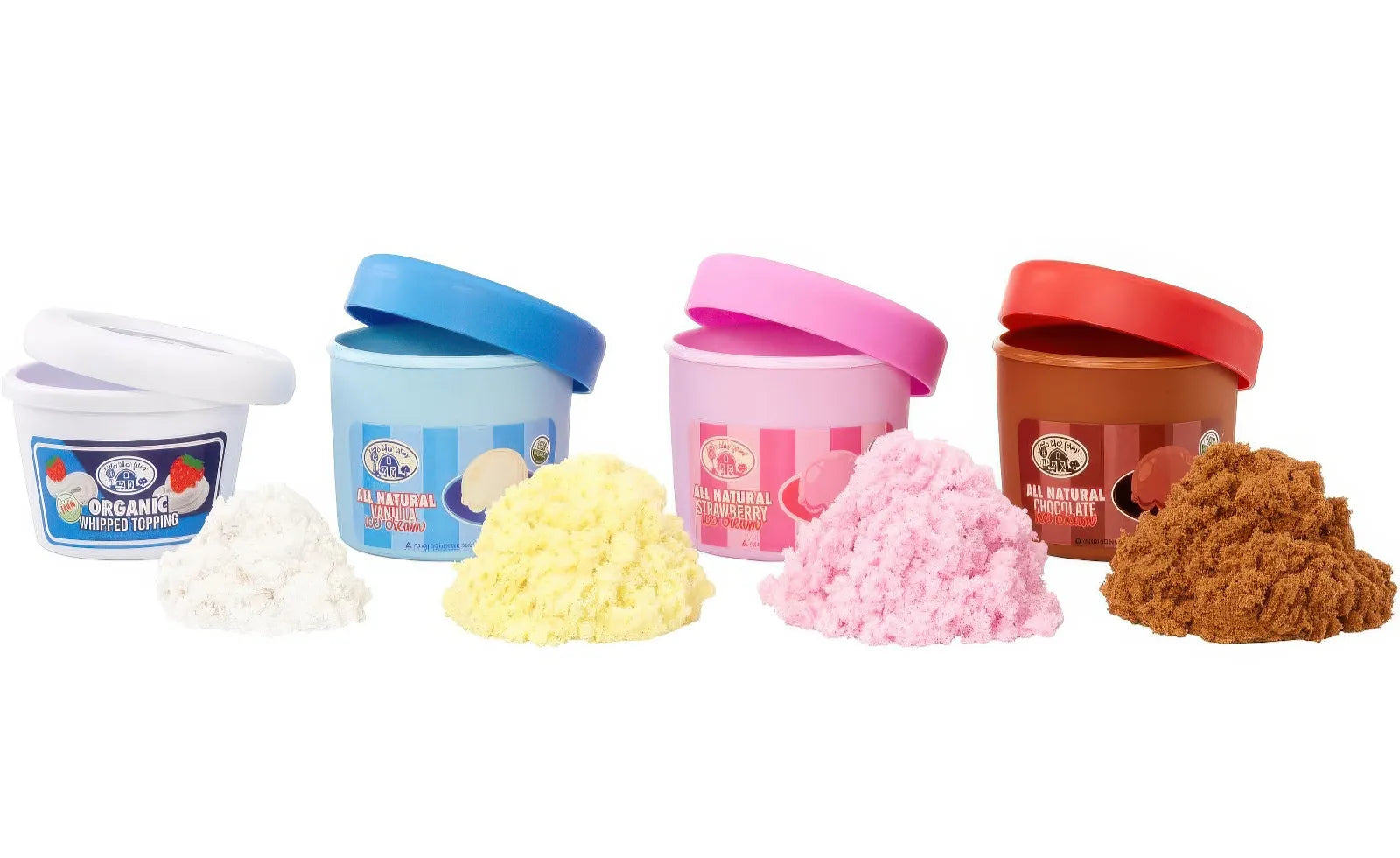 • KID’S CREAMERY - Boys and girls will enjoy this realistic Ice Cream Kit. With functional kitchen utensils and Make-It! Mix play sand, kids can develop fine-motor skills and explore their creations at the same time. This hyperrealistic set teaches kids the basics of assembling ice cream cones and sundaes, encouraging play to become practice and practice to become real.