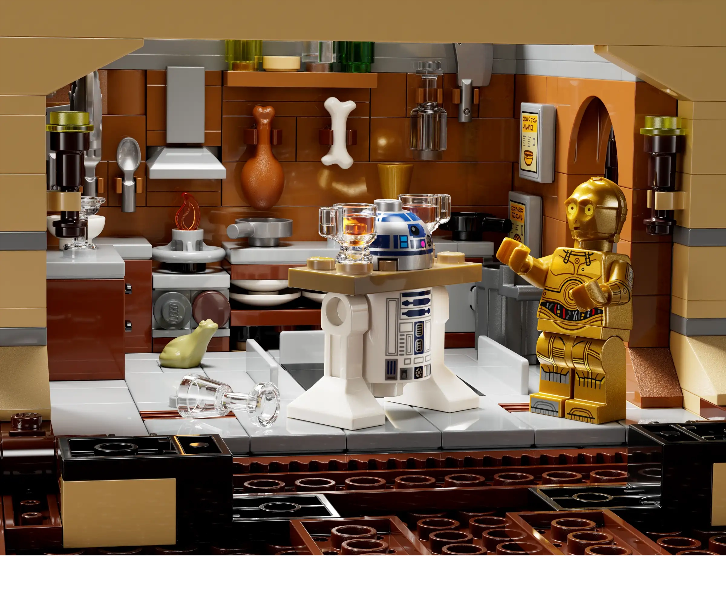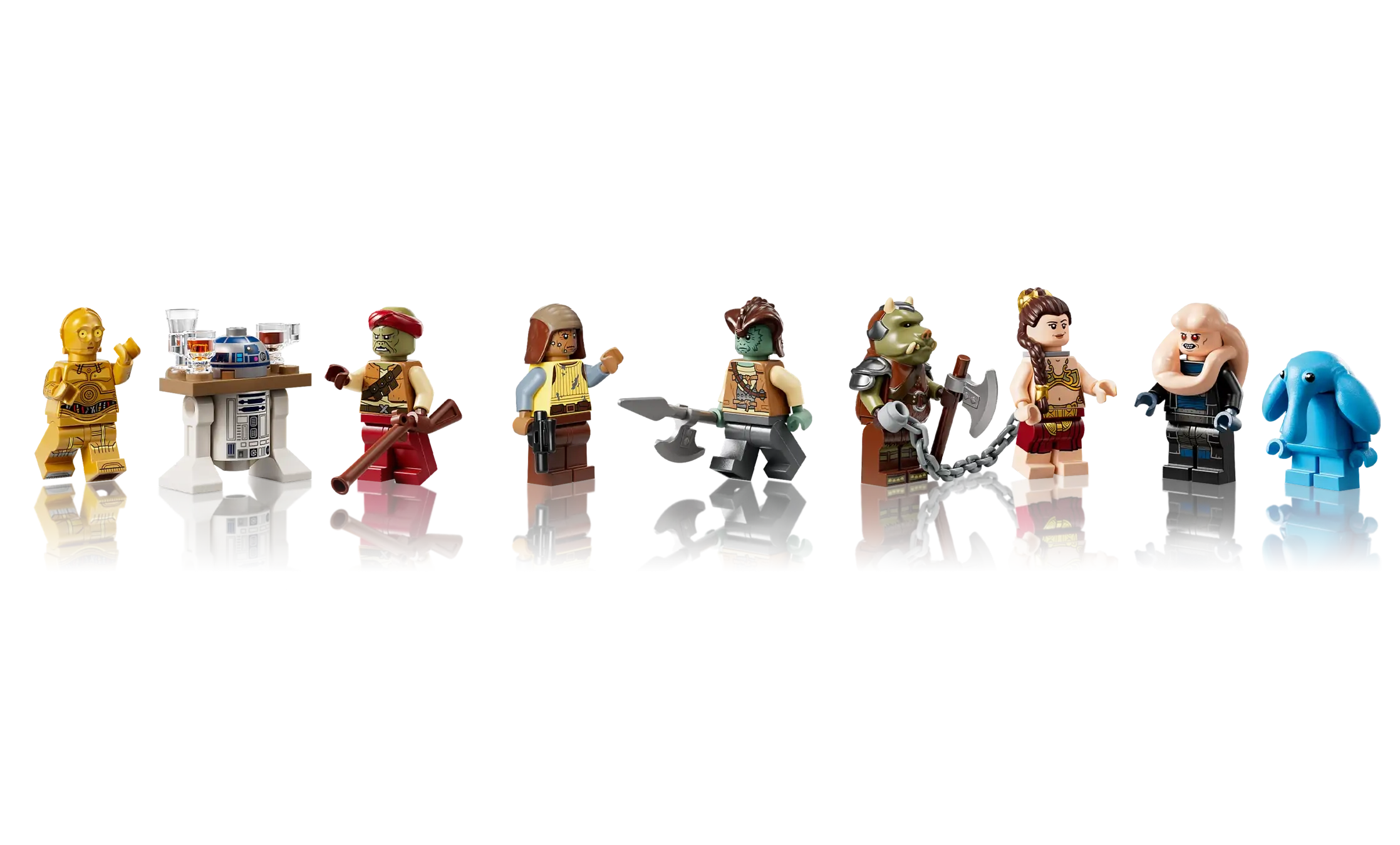 The set includes 11 collectible Star Wars characters, including C-3PO, Princess Leia, and Bib Fortuna LEGO minifigures, plus an R2-D2 LEGO droid figure wearing a bar table, like in Star Wars: Return of the Jedi! Display your creation alongside a stand which has space for the Jabba the Hutt LEGO figure, an information plaque and a LEGO Star Wars 25th anniversary brick. And to recreate the whole iconic Star Wars: Return of the Jedi scene, add the Desert Skiff & Sarlacc Pit (set 75396 – sold separately).
