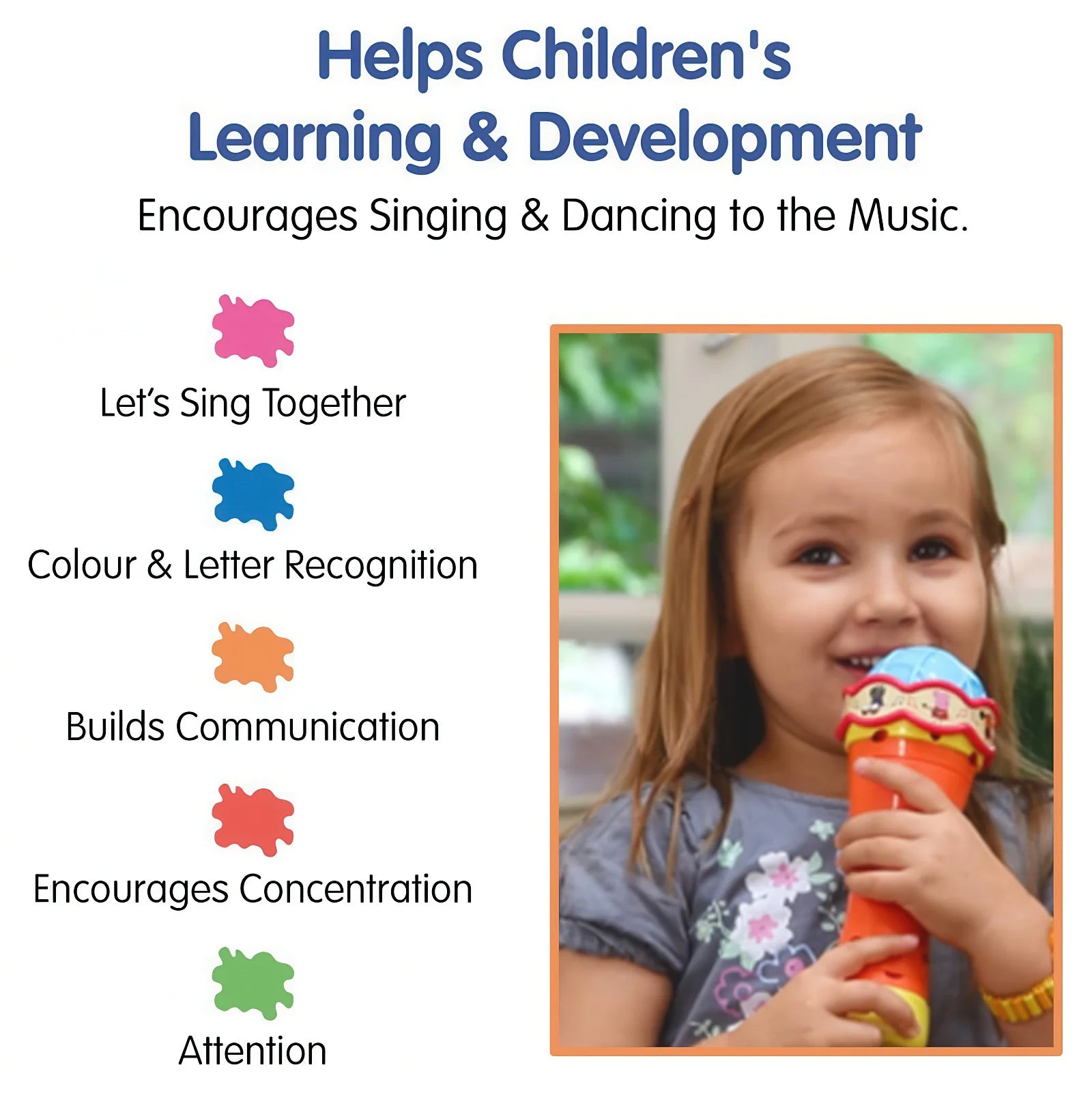 The microphone features bright colours, a sturdy exterior, and a flat base, allowing your kids to sing and dance to their hearts' content, hands-free.