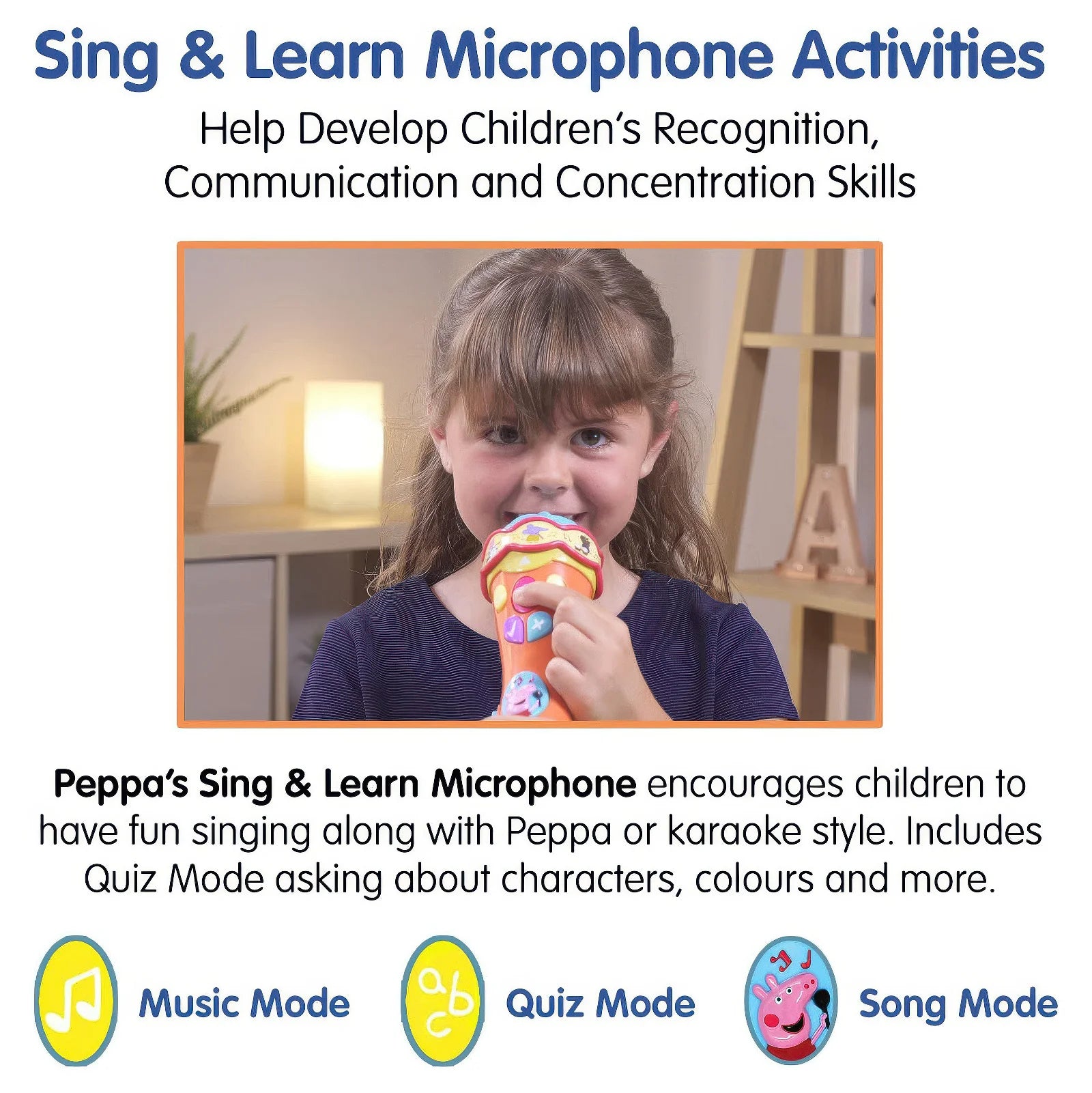 • QUIZ MODE – Easily switch from singing with Peppa to learning with Peppa. The toddler microphone doubles up as an interactive kids' electronic learning toy that teaches your child about colours, phonics, instruments and characters