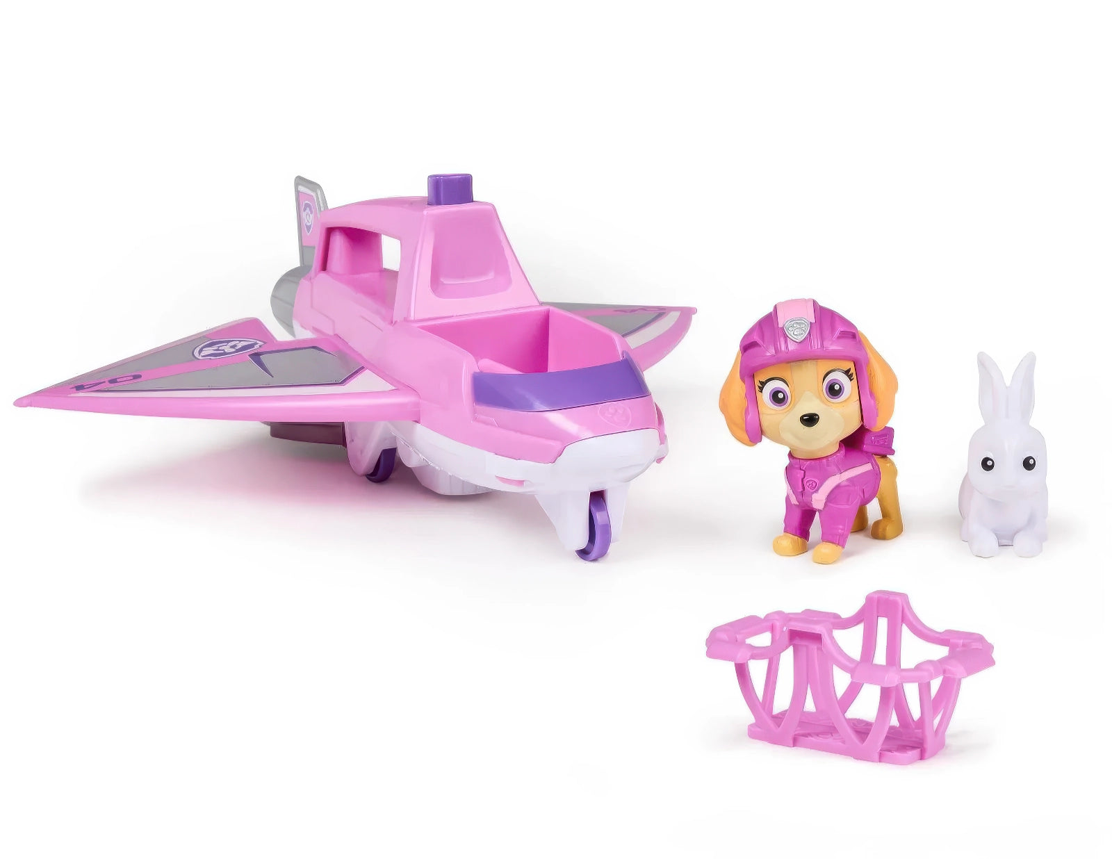 • RESCUE JET TOY: Clip Skye into position in the cockpit before taking off on your mission, then push the button to extend the claw & retrieve the bunny toy figure with a rescue basket to save the day!