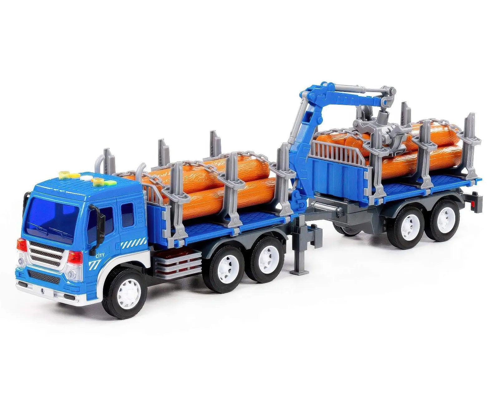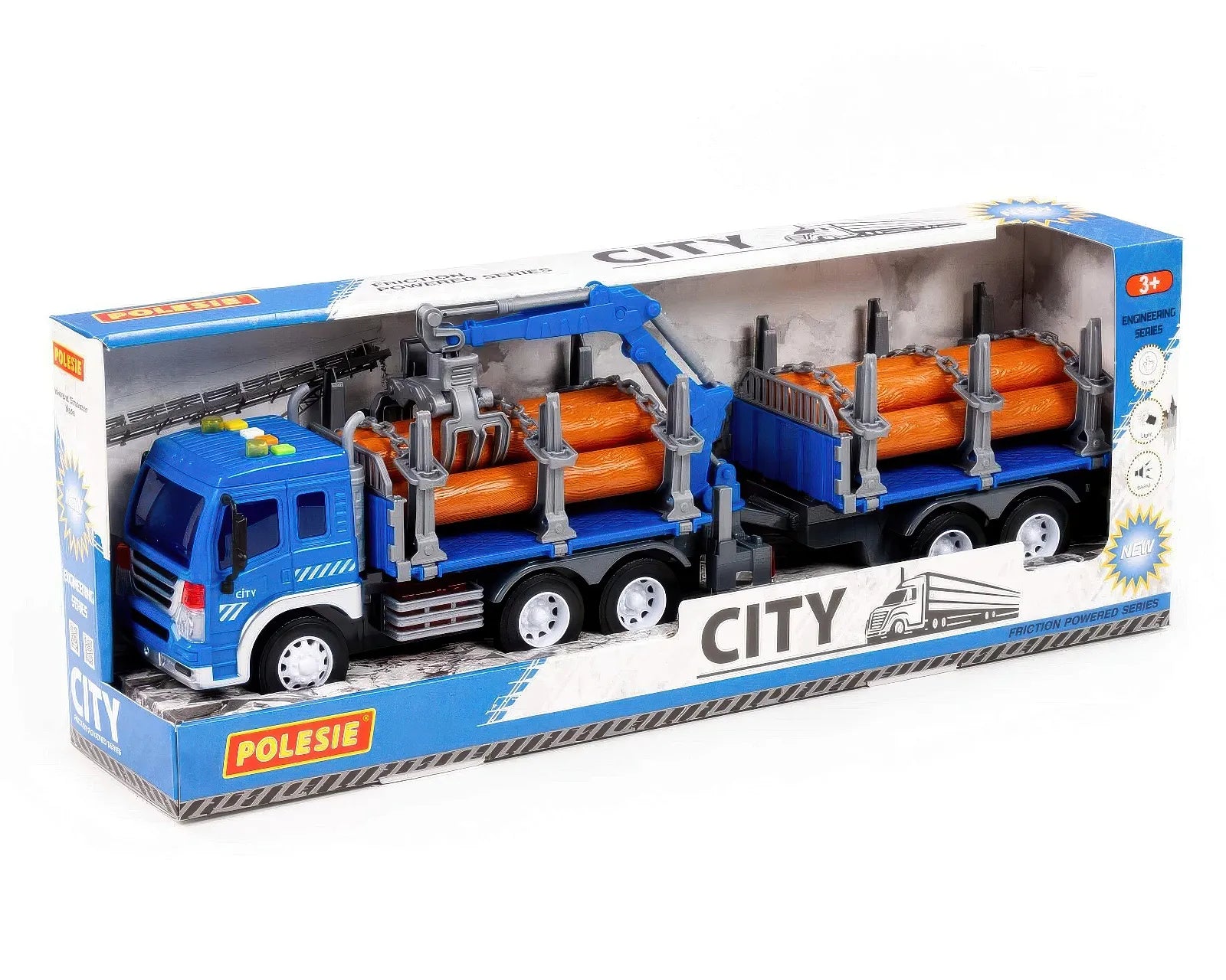 Polesie City Timber Truck with Detachable Trailer – Realistic Wooden Log Hauler for Kids