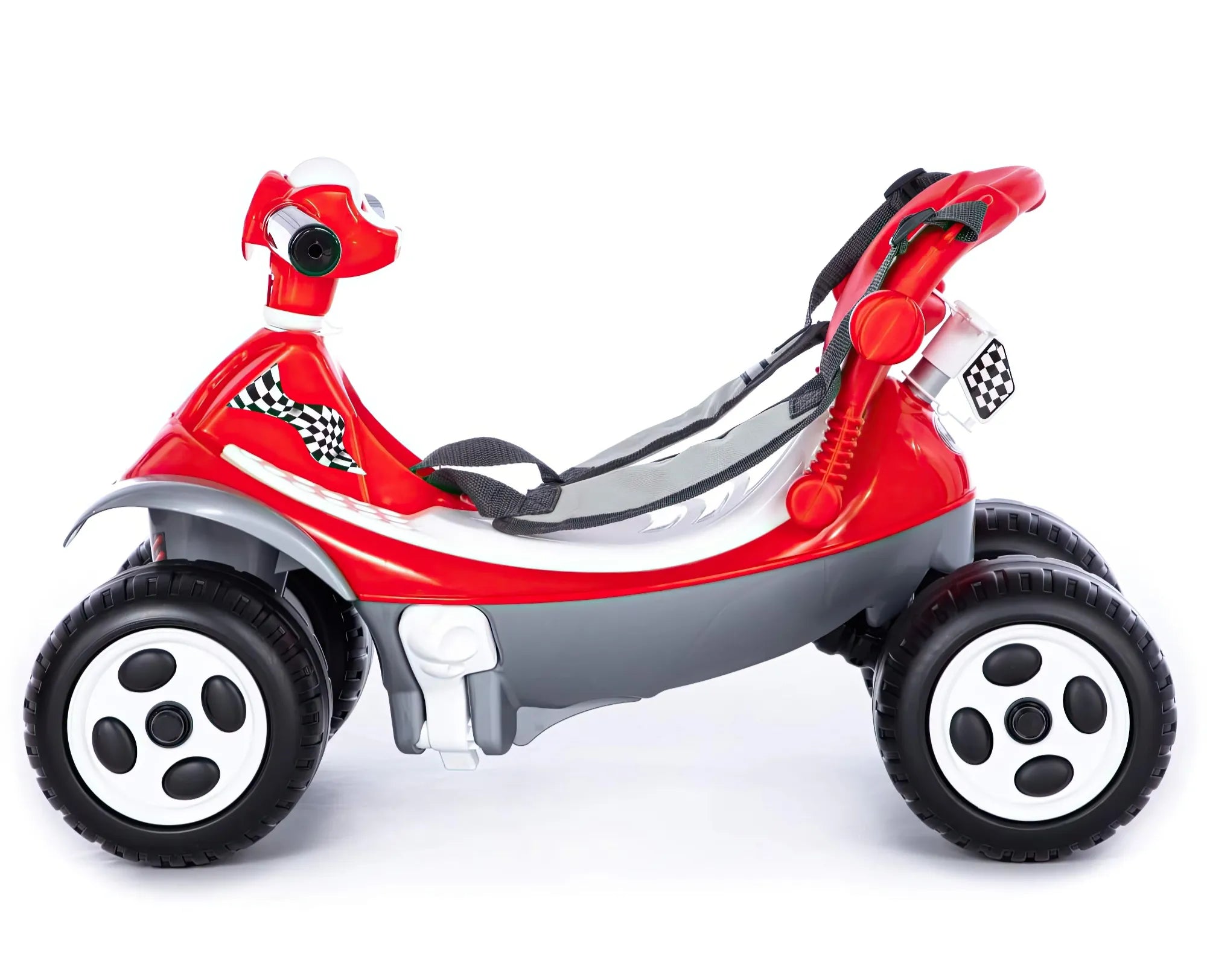 With its low seat, wide wheels, and safety belt, children can ride with confidence while developing motor skills and independence. Crafted with durable plastic and easy-to-grip handles, this quad is lightweight enough for little ones to move around while being strong enough for years of use.