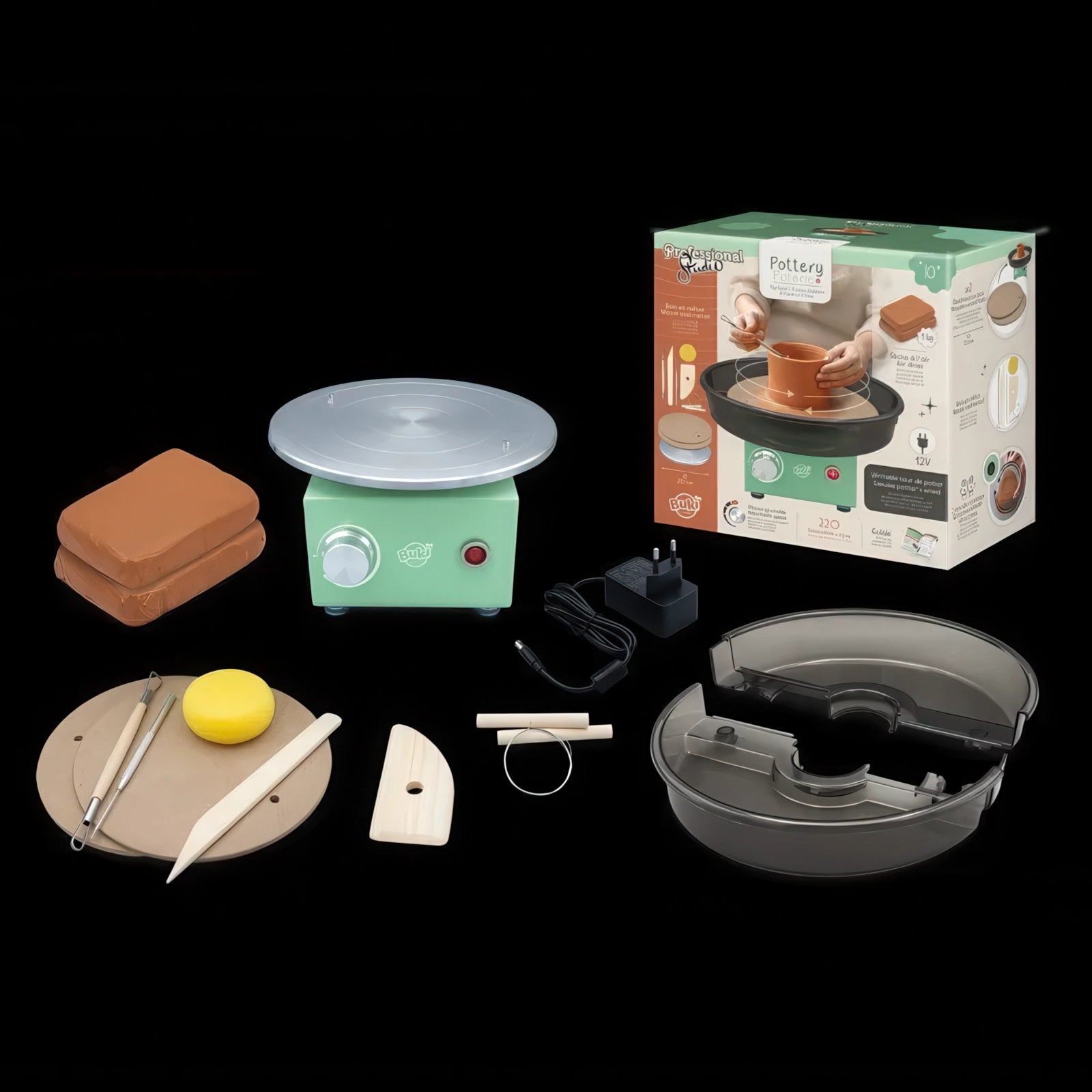 The potter’s wheel only works with the mains adapter provided, which ensures a 12V supply.
