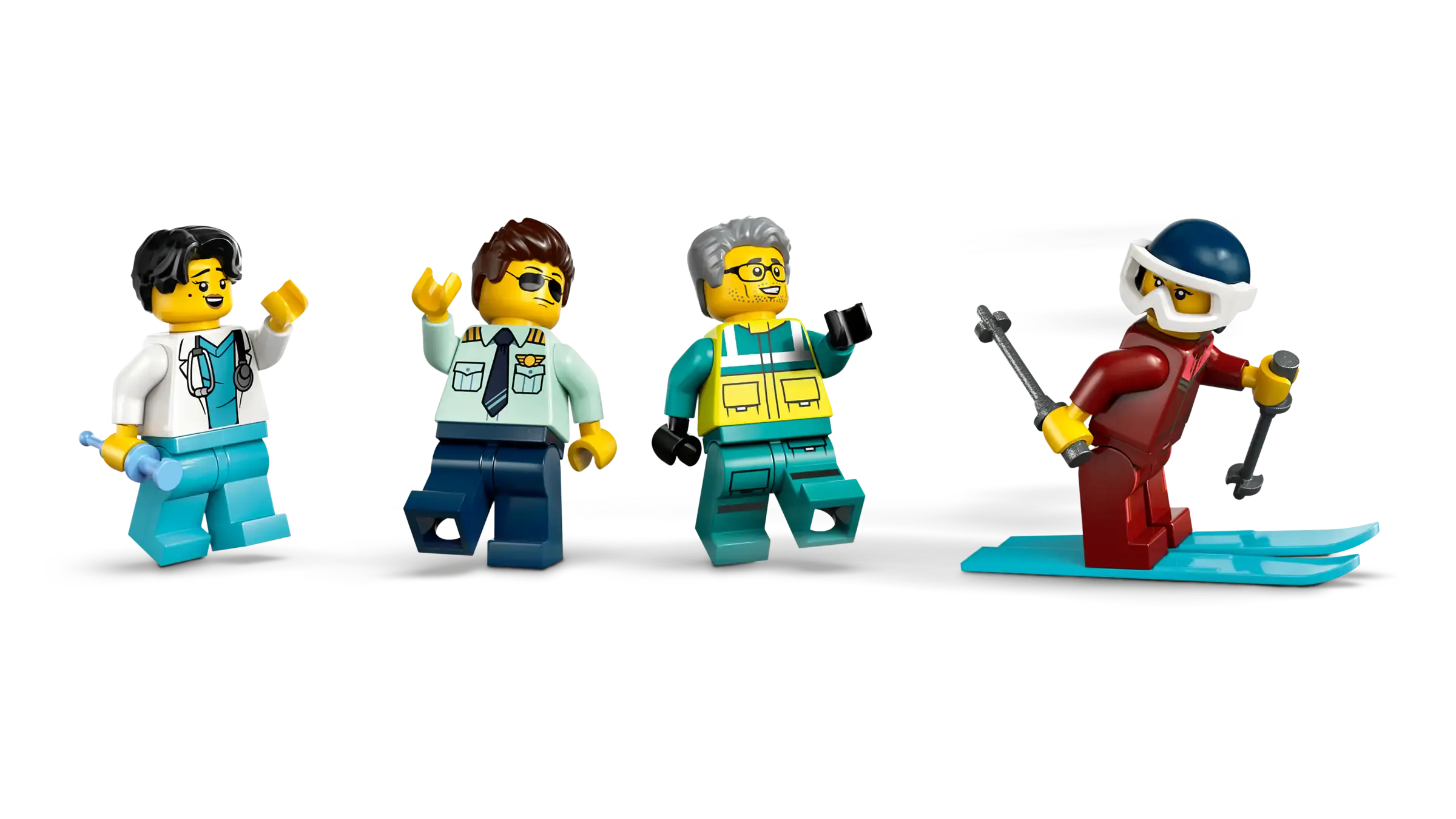 • What’s in the box? – Includes everything kids need to build a toy ambulance plane, snow scooter and a small airport scene with a toy wind sock, plus pilot, doctor, paramedic and skier minifigures