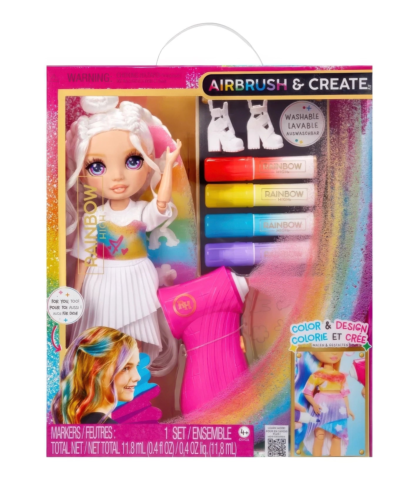 RAINBOW HIGH Air Brush & Create - 1 DIY Fashion Doll with Airbrush Market Kit, Washable Rainbow Markers, Long Hair, Grey Eyes - Assorted