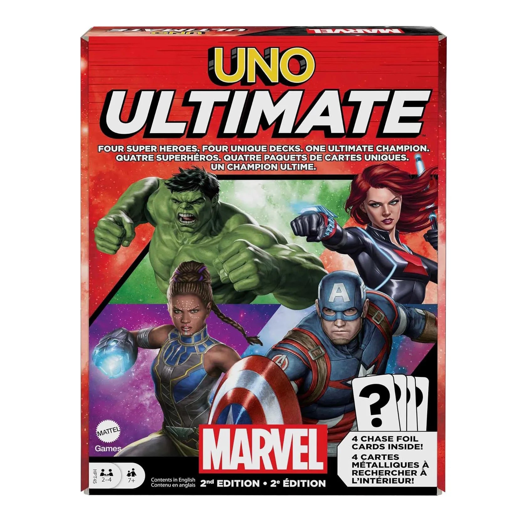 Mattel Games UNO Ultimate Marvel Card Game with 4 Character Decks, 4 Collectible Foil Cards & Special Rules, 2–4 Players, 2nd Edition