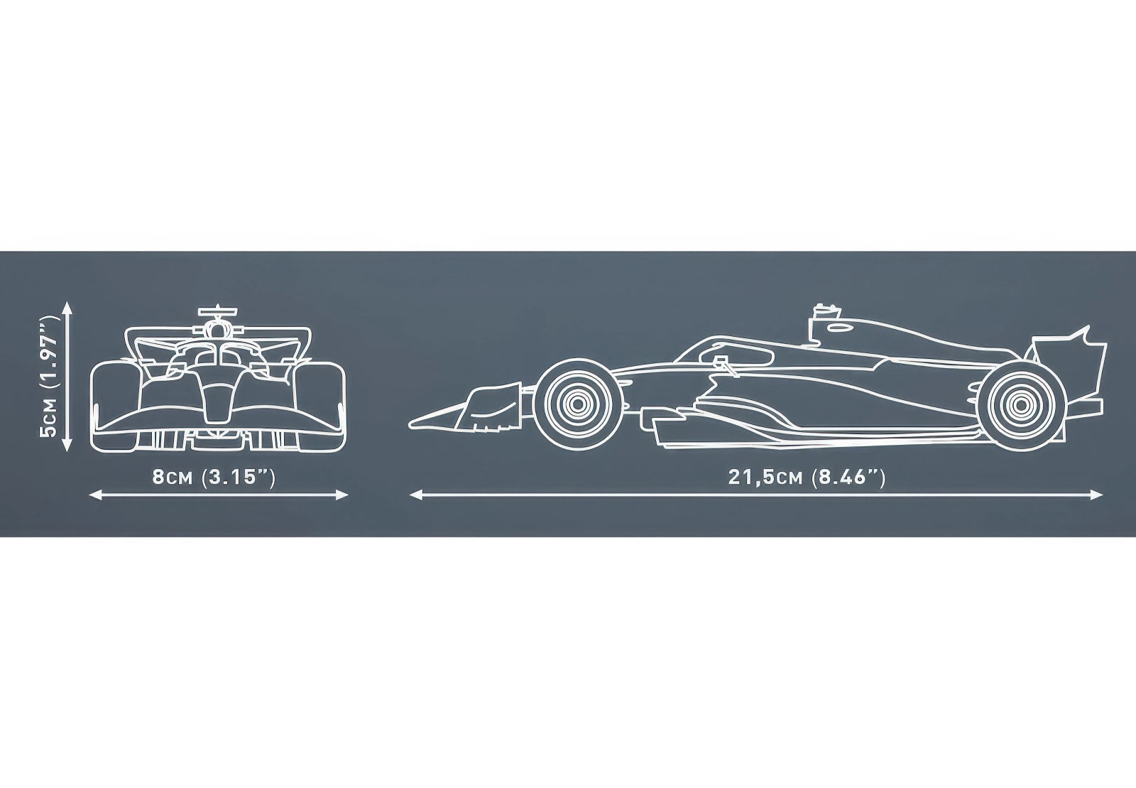 • 1:26 scale – Every detail, from the interior to the controls, that you will find in a real racing car has been recreated from this scale model.