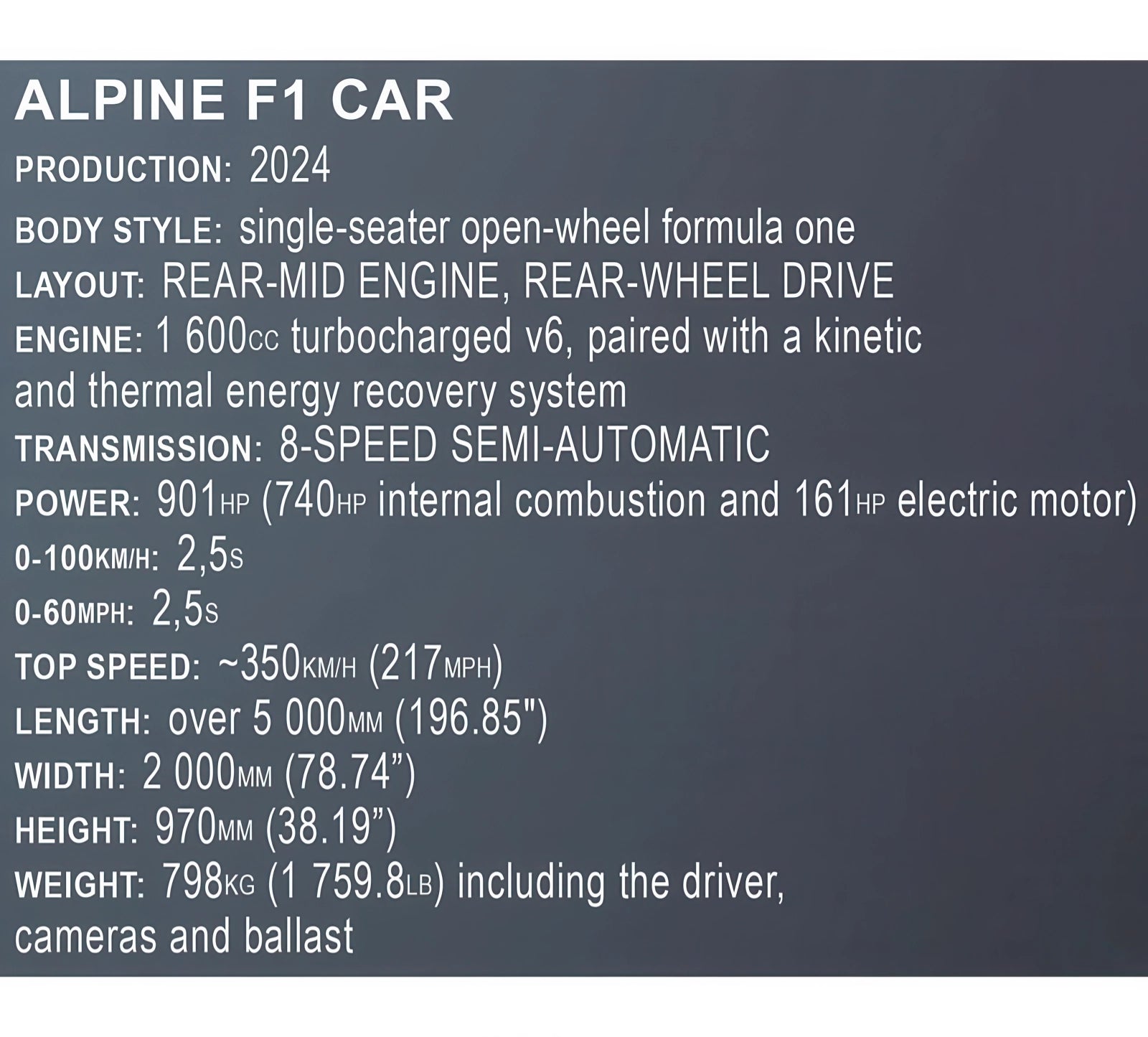 Whether you are a Formula 1 enthusiast or a collector of block models, the F1 Alpine set from COBI is the perfect choice!