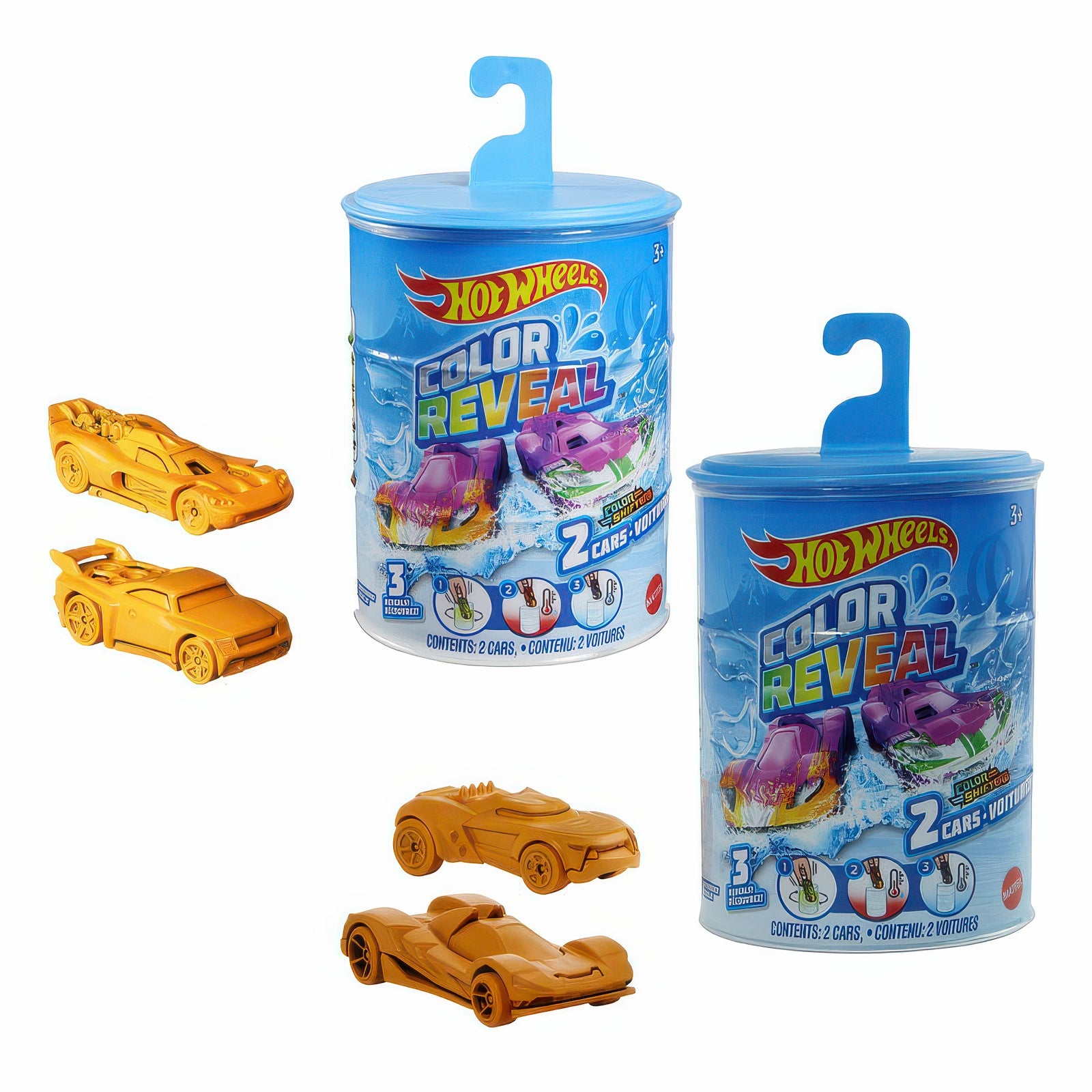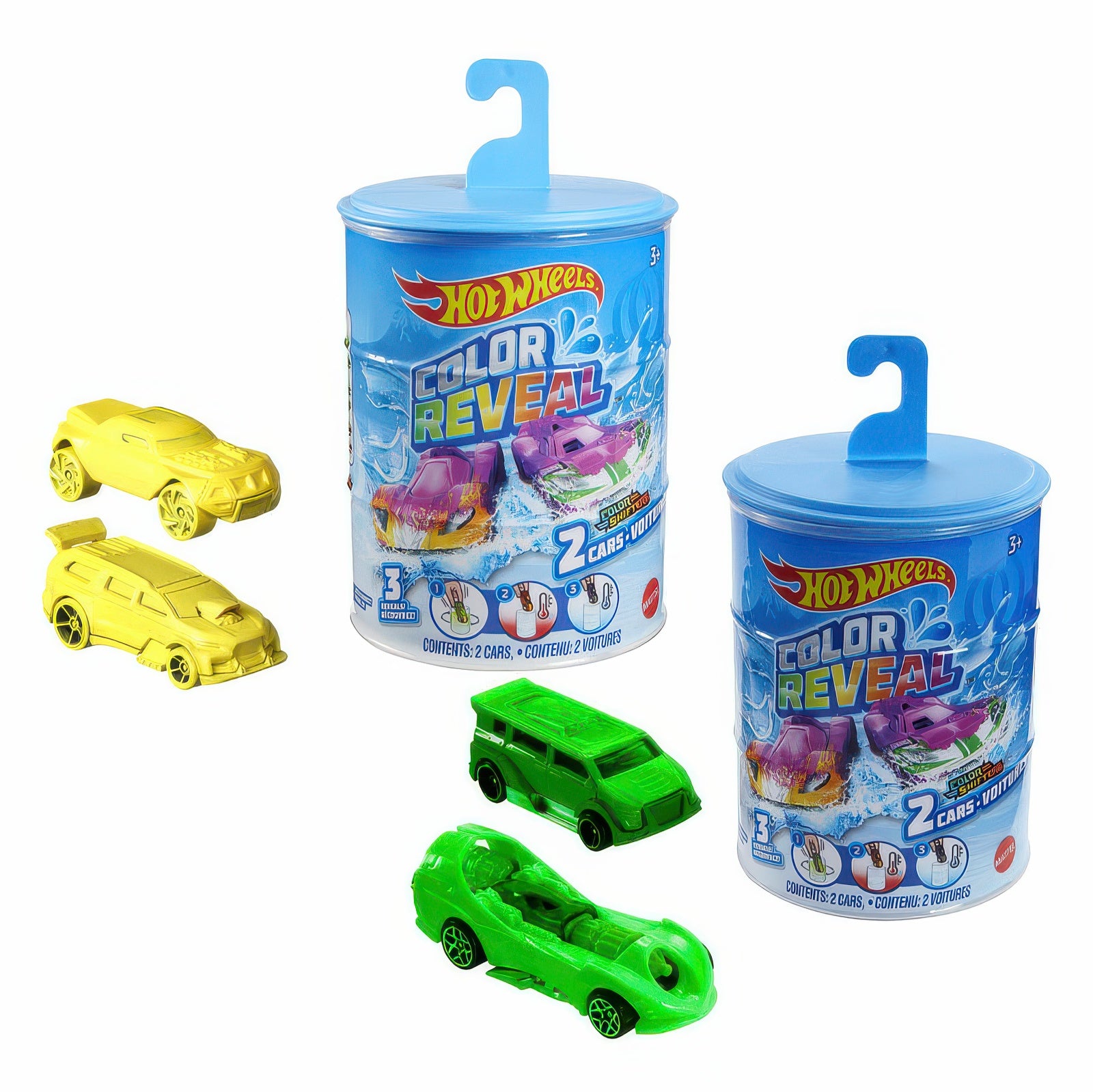 • The Hot Wheels colour Reveal 2 Pack holds 2 1:64 scale Hot Wheels colour Reveal cars in a barrel drum, each with 2 surprise decos just waiting to be discovered.